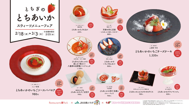 栃木県のブランドいちごを使った「とちぎのとちあいか スウィーツメニューフェア」30店舗で開催。提供期間2026年2月18日(水)~3月3日(火)