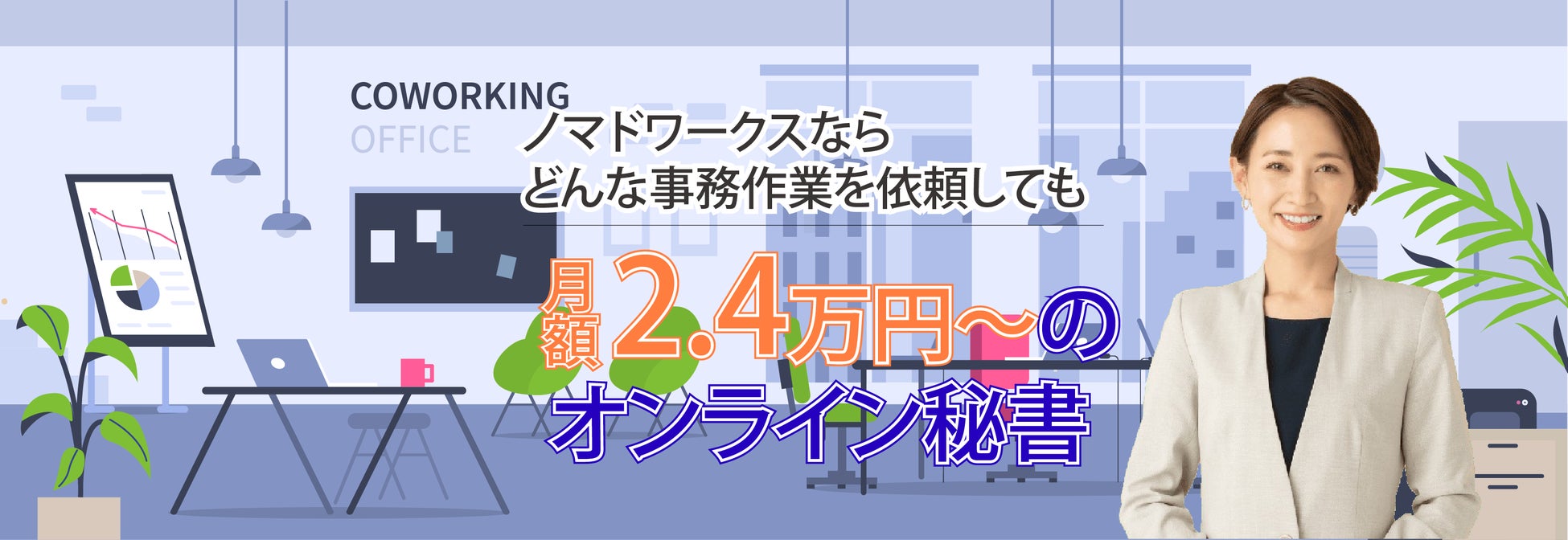 パソコンでできる業務であればなんでも対応できますので、エリア・業種・規模問わず、どんな企業様でも、月額2.4万円でどこよりも手軽にノマドワークス(https://nomadworks.biz/)にお仕事をご依頼いただけます!