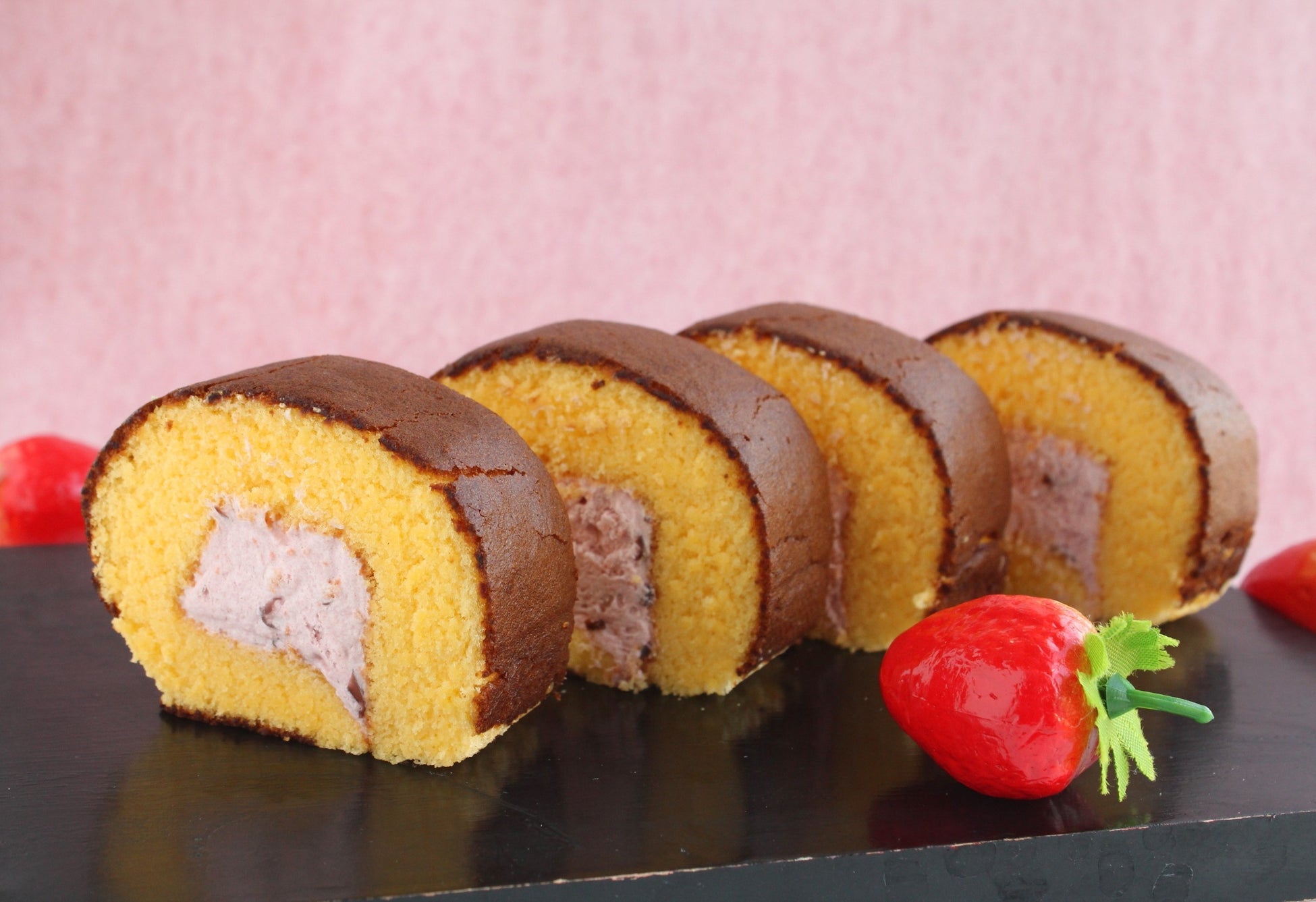 しっとりとしたカステラ生地で、あまおう苺の酸味と香りが広がるホイップクリームを包み込みました。苺ミルク風味のホイップクリームに粒あんを合わせ、和のテイストをプラスしました。