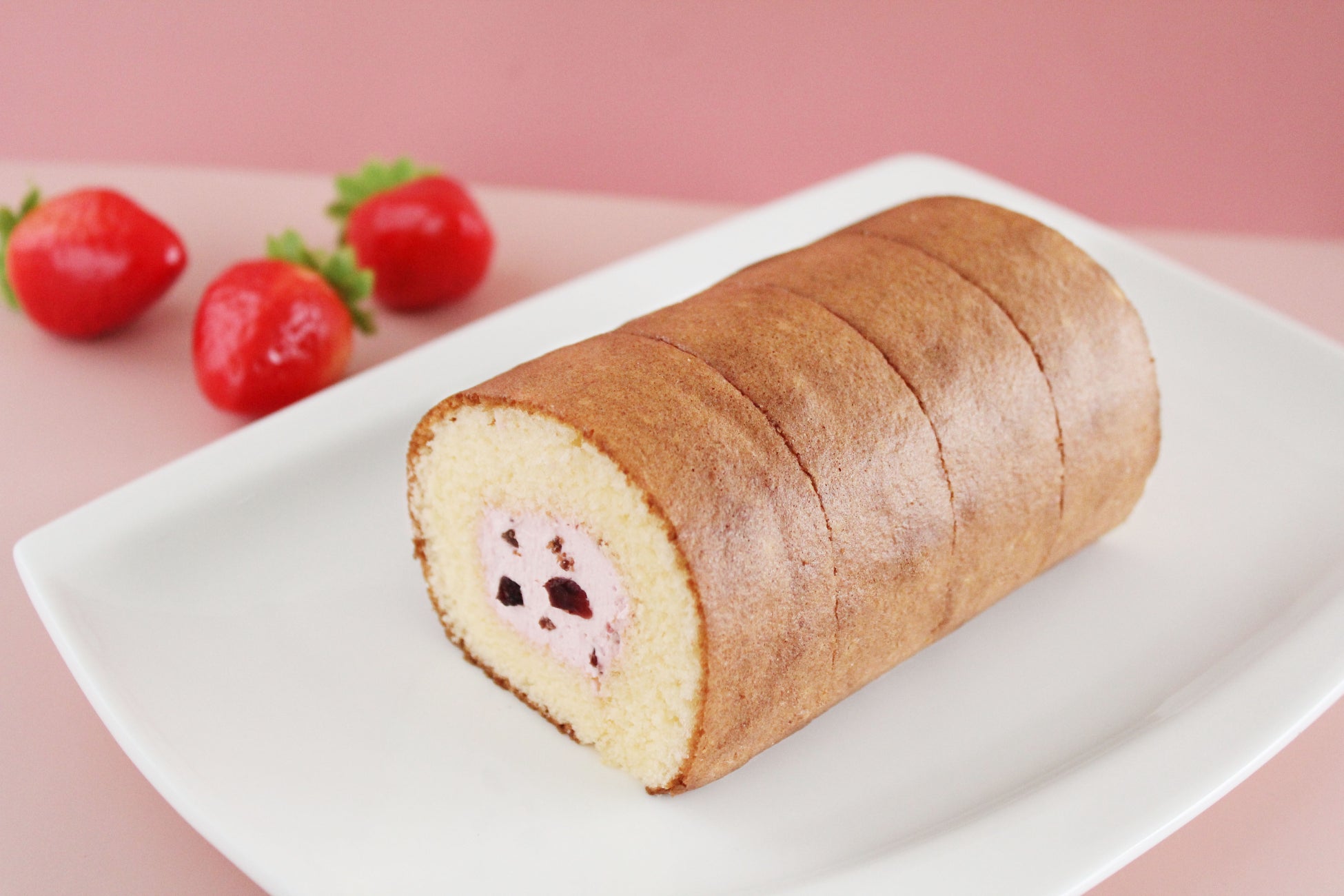 ふんわりとしたスポンジケーキで、あまおう苺・とちおとめ・ラズベリーピューレを使用した甘酸っぱいクリームを包み込みました。ドライいちごやクランベリーの食感が楽しい、贅沢なロールケーキです。