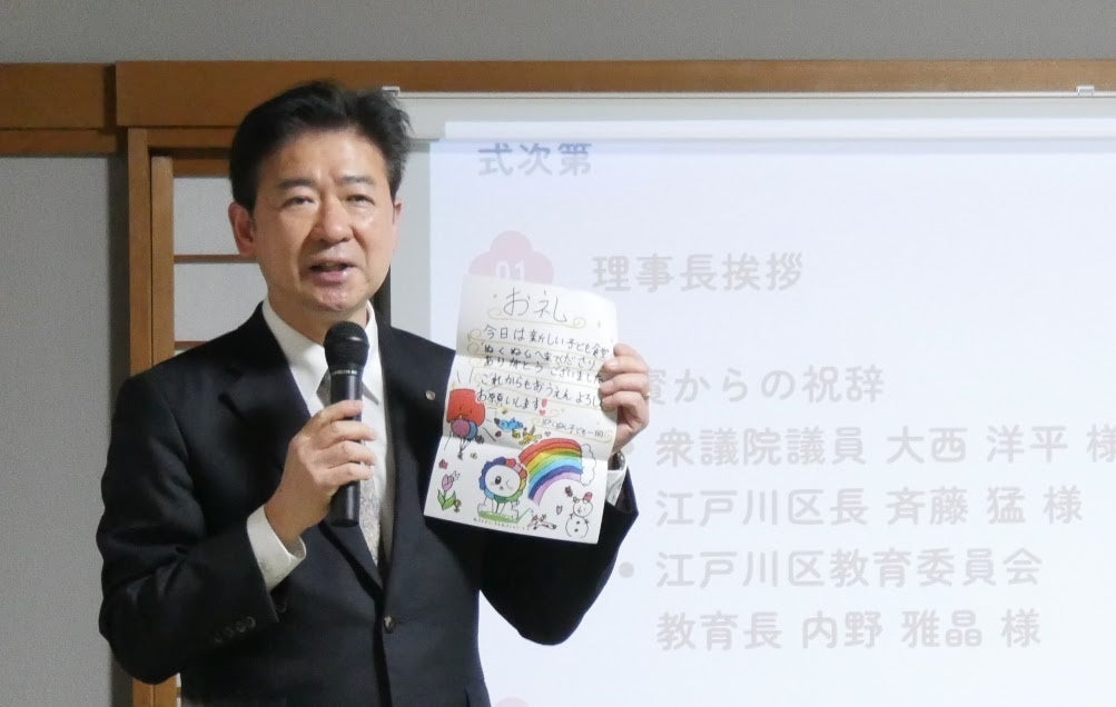 セレモニーでは、斉藤区長、内野教育長からこれまでの実績と「24時間化」への強い期待が語られました。子ども食堂らしく、お茶での乾杯が行われ、地域の学校や企業、行政が一体となって子どもを支える「江戸川モデル」の強固な絆を再確認する場となりました。