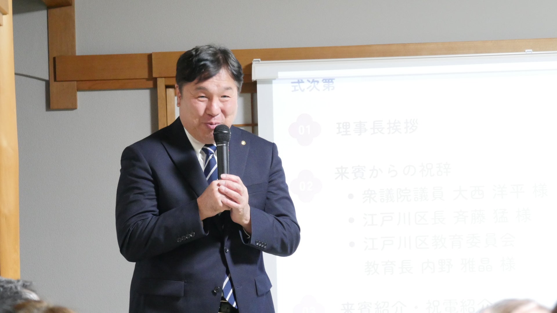 主な参列者・祝電(敬称略):斉藤 猛(江戸川区長)、内野 雅晶(江戸川区教育長)、他行政関係者、地元学校長、企業代表者ら多数