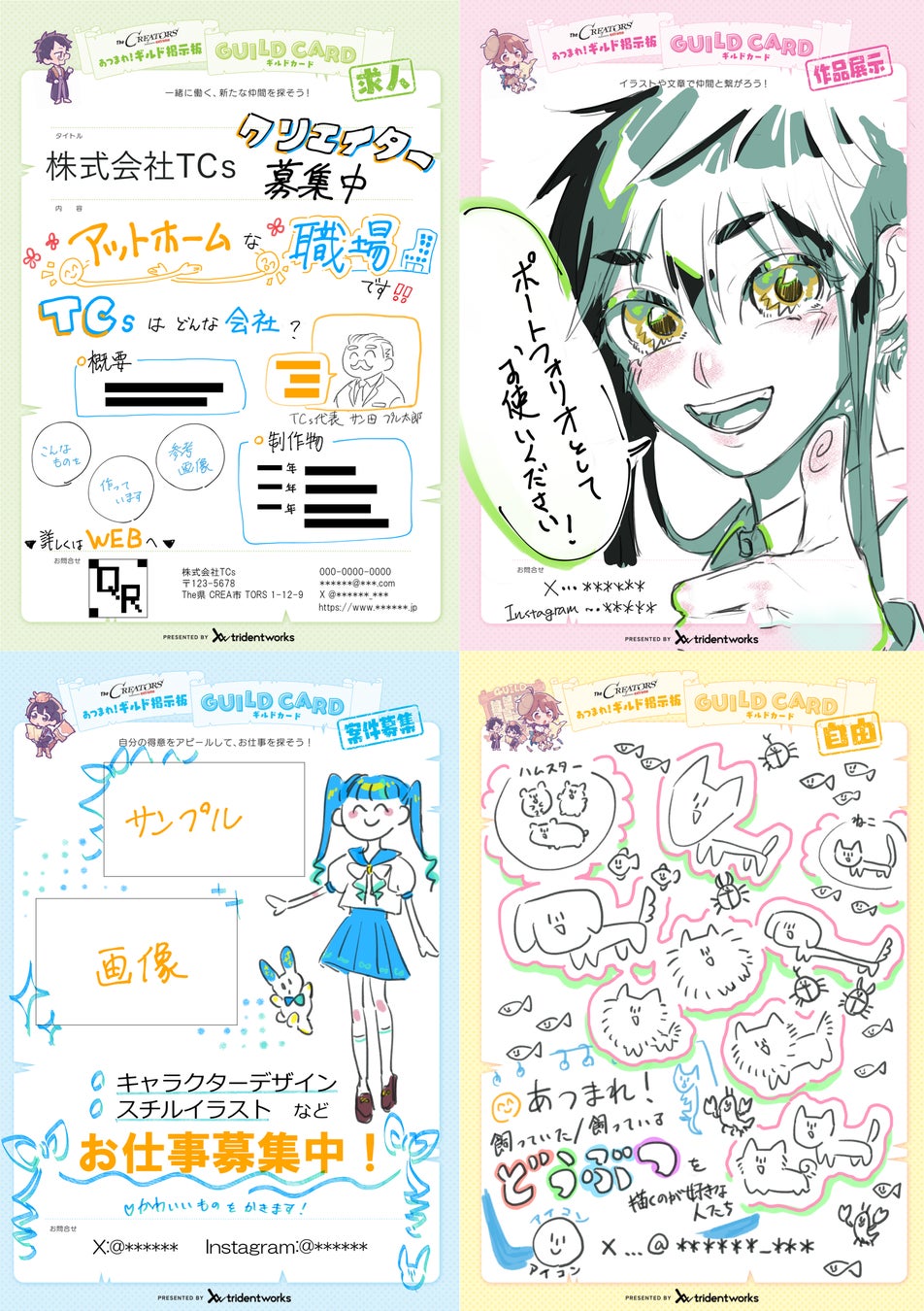 『あつまれ!ギルド掲示板』では指定の用紙に自己PRや案件募集、
