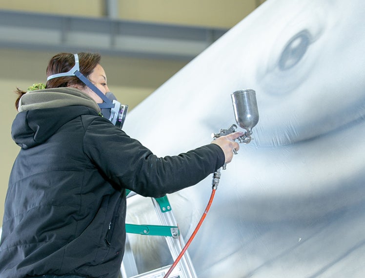 現在、同社のバルーンは、多様な生地を縫い合わせ、塗装や特殊な印刷を施して制作されています。大規模かつリアルで精密な造形物に仕上げることができるようになりました。
