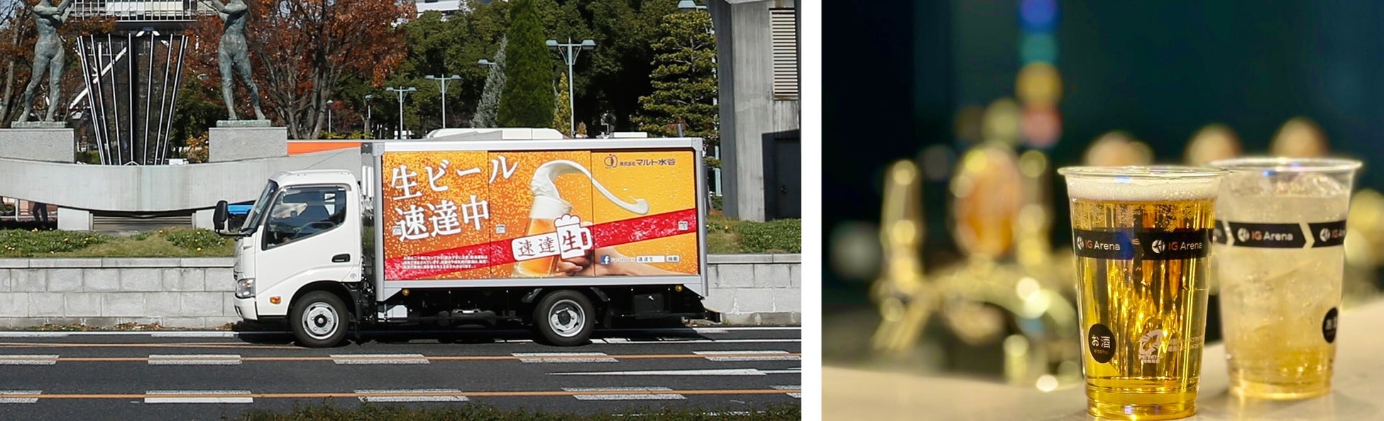 マルト水谷は、オフィシャルサプライヤーとしてアリーナ内の来場者向け飲食店やd CARD LOUNGE、MUFG Suiteに対し、酒類全般ならびに一部ソフトドリンク・食料品の配達サービスを提供しています。