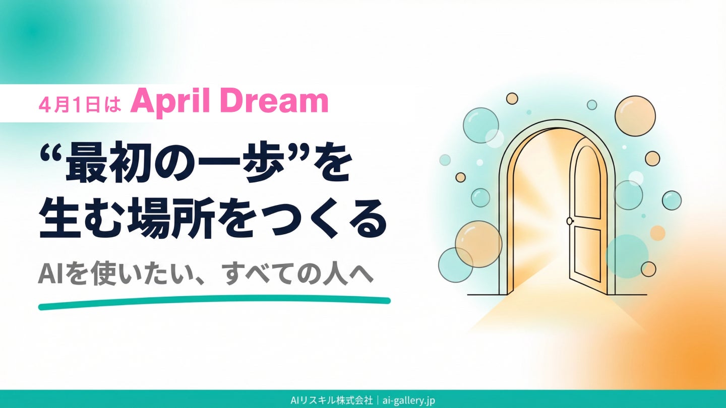 当社は、4月1日を夢を発信する日にしようとするApril Dreamに賛同しています。このプレスリリースはAIリスキル株式会社の夢です。