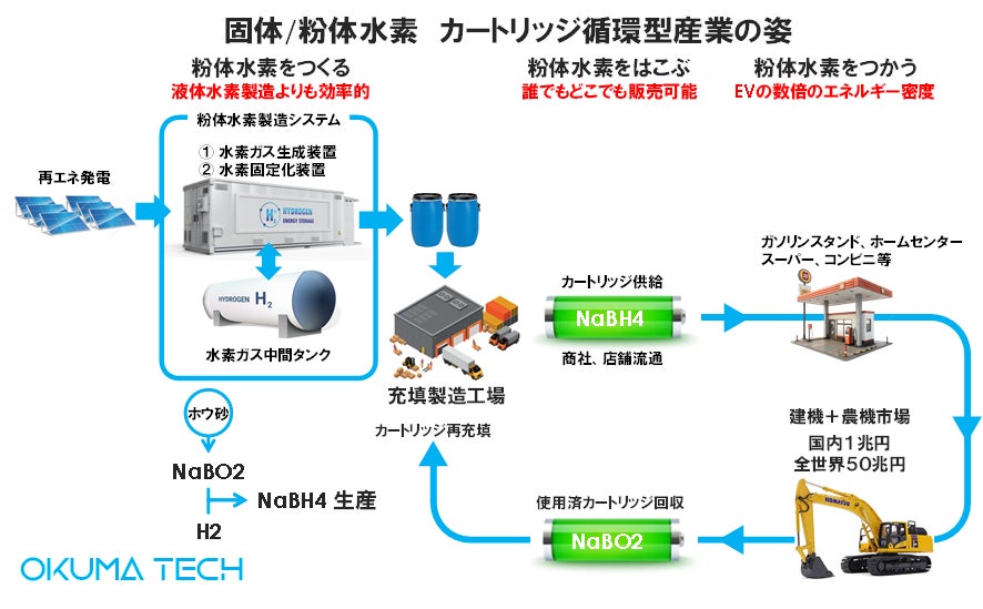 OKUMA TECH(旧 OKUMA DRONE)は、「地元から未来をつくる」という理念のもと、小型水素製造装置・可搬式水素発電装置・粉体水素関連装置・エネルギーマネジメントソリューションなど、持続可能なエネルギー社会の実現に向けた製品開発を進めております。
