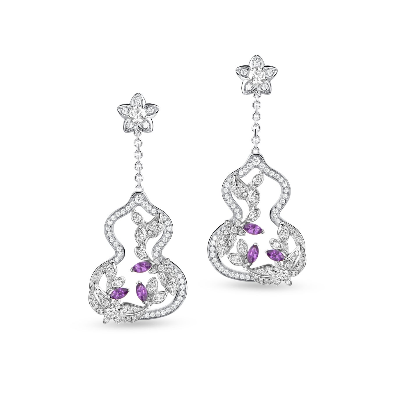 “Wulu Garden” コレクションへ新たにラインナップするのは、18Kホワイトゴールドのネックレスとペンダントイヤリング、各3種類。QeelinのシグネチャーであるWuluにパヴェダイヤモンドが丁寧にあしらわれ、ピンクサファイア、アコヤ真珠、アメジストが彩りと調和をもたらします。