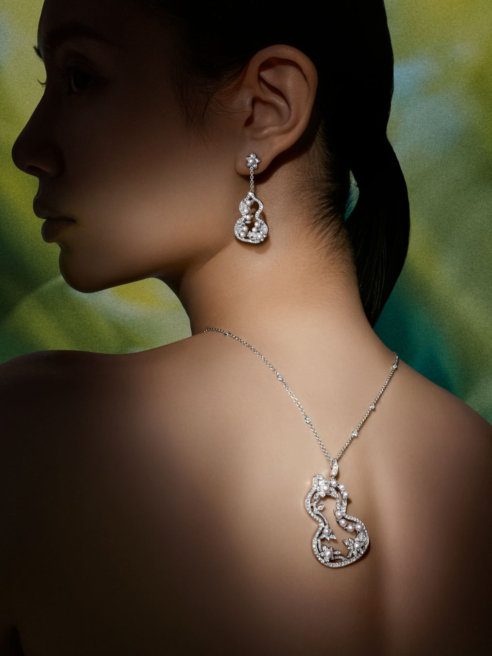 花々が織りなす多彩な魅力は、長きにわたりQeelinのジュエリーに鮮やかな彩りを添え、自然の美しさと躍動する生命を称えてきました。自然への愛を受け継ぐ、 “Wulu Garden” は、幸運の象徴であるひょうたんモチーフをクリエイティブかつロマンティックに表現し、この魅惑的な世界を再解釈します。