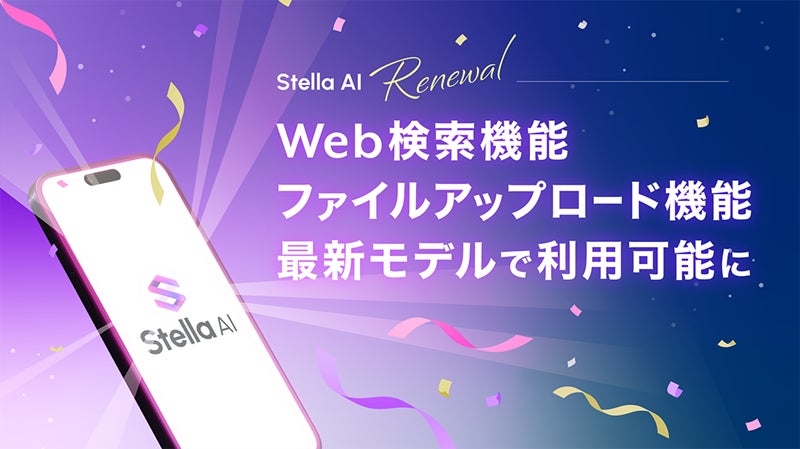 生成AIを活用したサービス開発に取り組む株式会社SUPERNOVA(本社:東京都港区 代表取締役社長 木本 東賢 以下、当社)は、お客さまのサービスの使い勝手を向上することを目的に、2025年2月17日(月)に「Stella AITM」のリニューアルを実施しました。UI変更に加え、最新情報に基づくAI