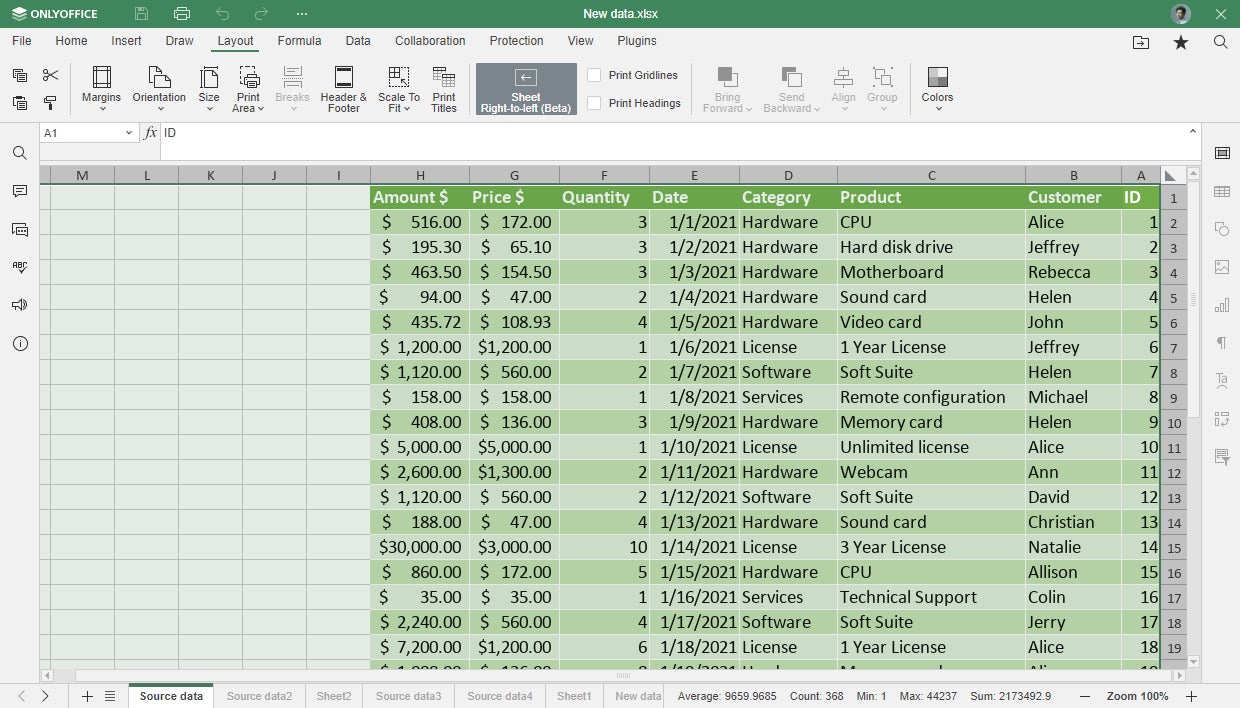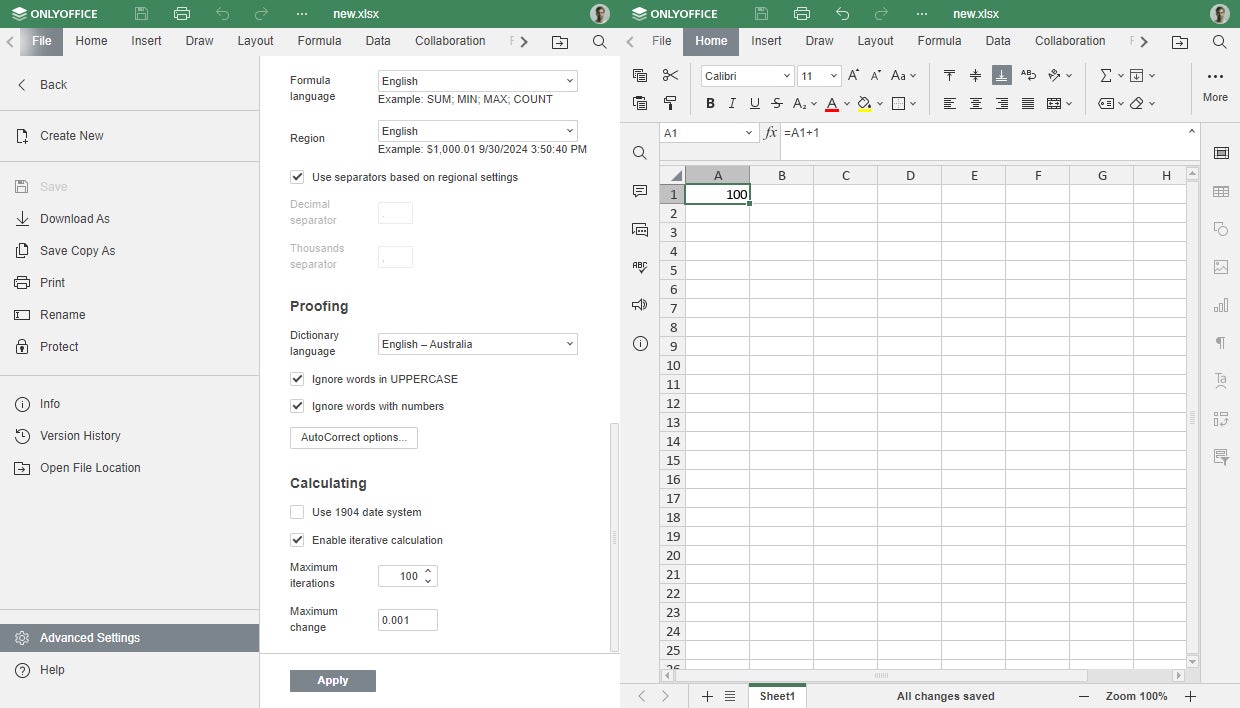 ONLYOFFICEは、グローバルなユーザーに対応するため、ローカリゼーションを継続的に強化しています。今回のリリースでは、シートエディターでのRTL(右から左)対応が強化され、セルの正しい配置が実現しました。また、辞書の更新、すべての言語に対応したスペルチェック機能の改善も行われました。