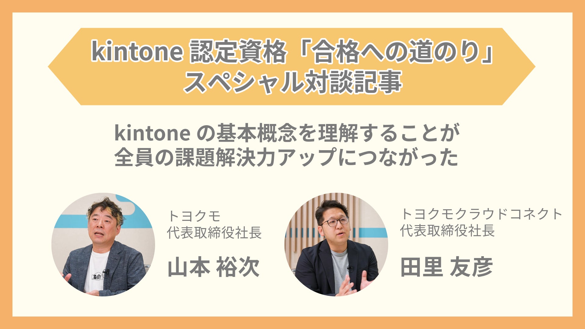 本記事では、トヨクモクラウドコネクトの田里友彦と、トヨクモ株式会社(本社:東京都品川区、代表取締役社長:山本裕次、以下「トヨクモ」)の山本裕次氏が、資格取得による業務効率の向上やクライアントに対する信頼性強化の重要性について語っています。全社員が資格を取得することで、トヨクモクラウドコネクトはサービスの品質と信頼性を高め、業務効率化を推進しています。この取り組みを通じて、kintoneを基盤とした業務改善とDX推進の模範企業を目指しています。