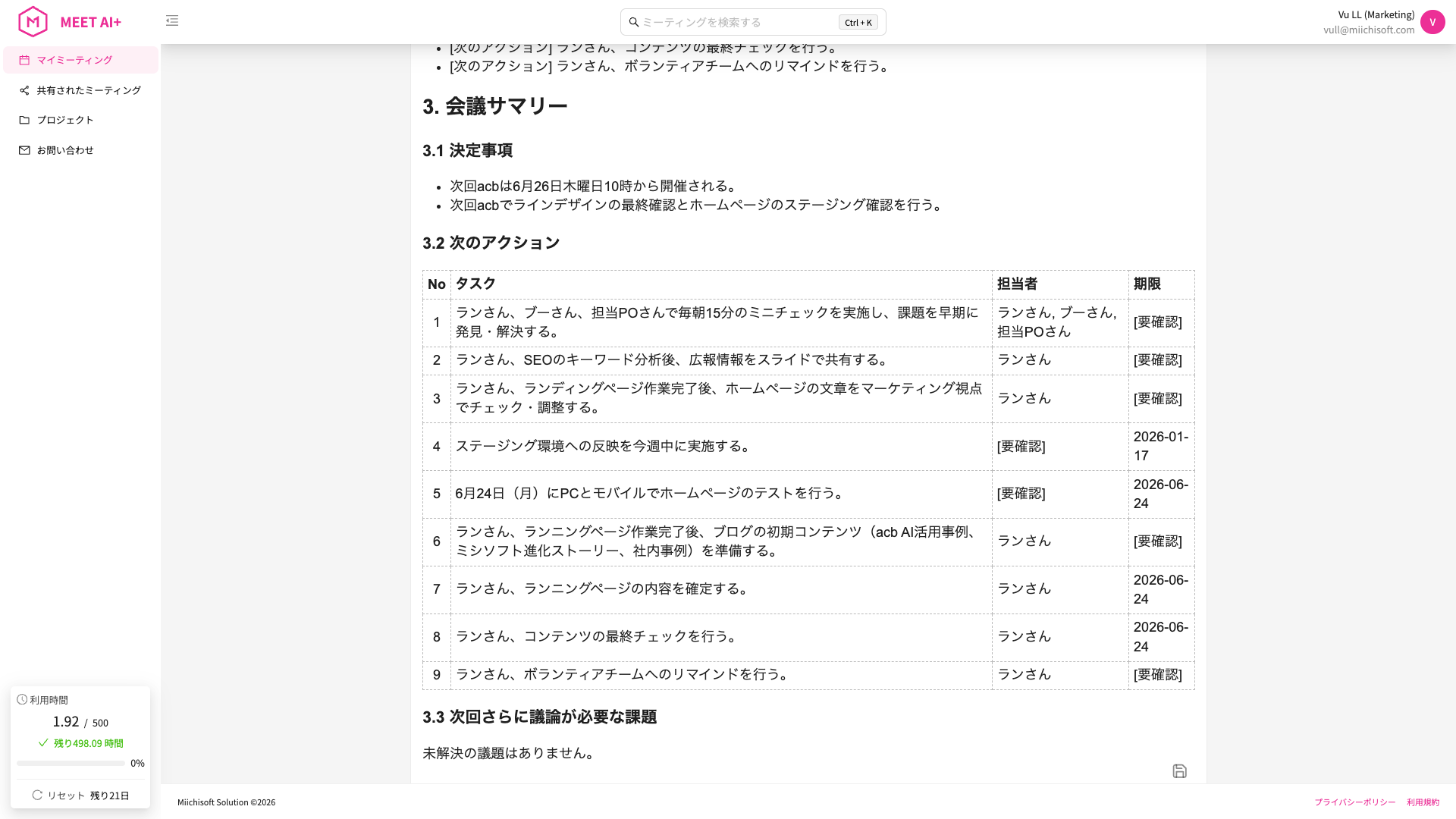 このような状況の中、Miichisoftが開発した「Meet AI+」は、日本企業の会議議事録作成を自動化します。