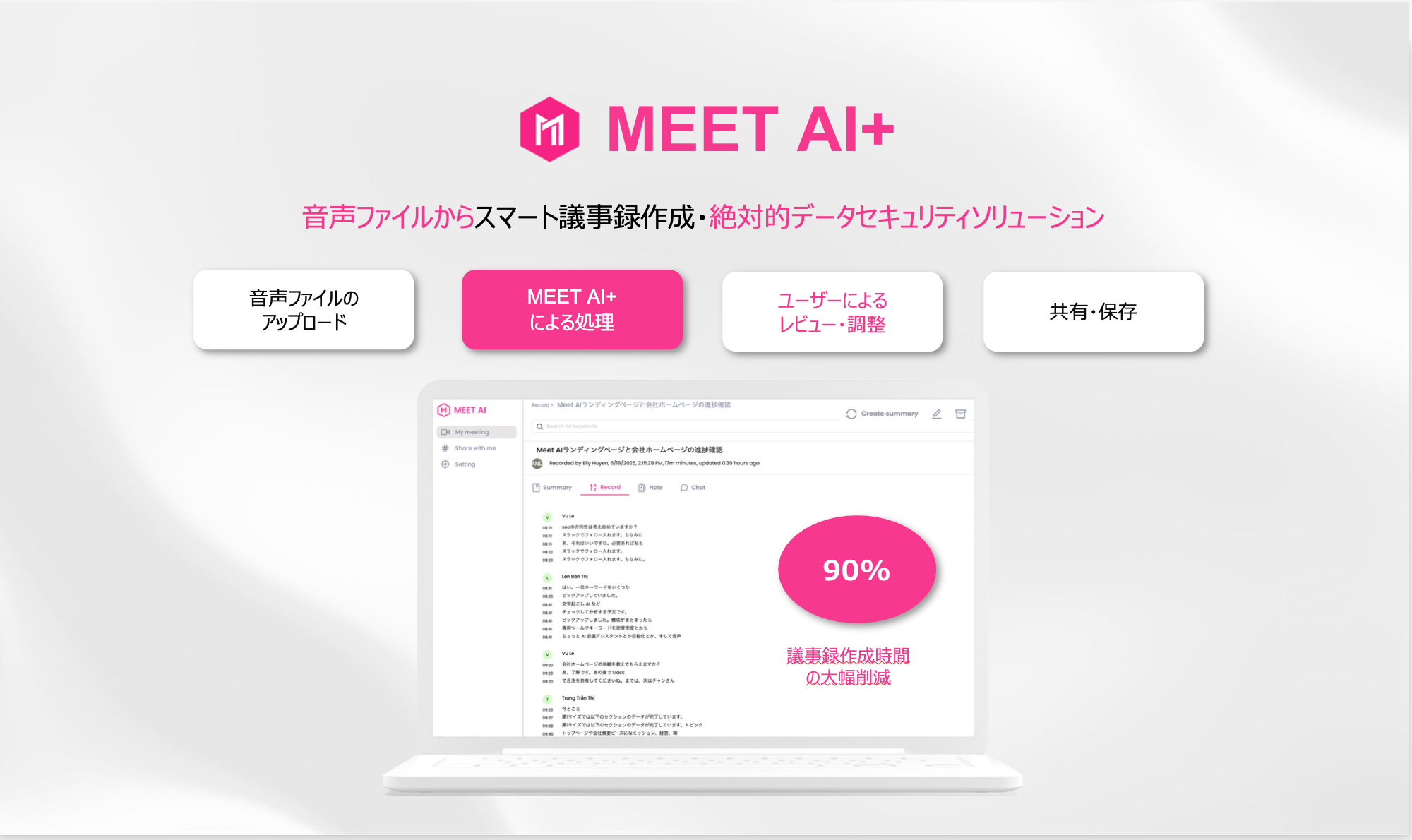 Miichisoft、日本企業の対面会議に最適化したAI会議アシスタント、議事録作成時間を最大90%削減「Meet AI+」を発表