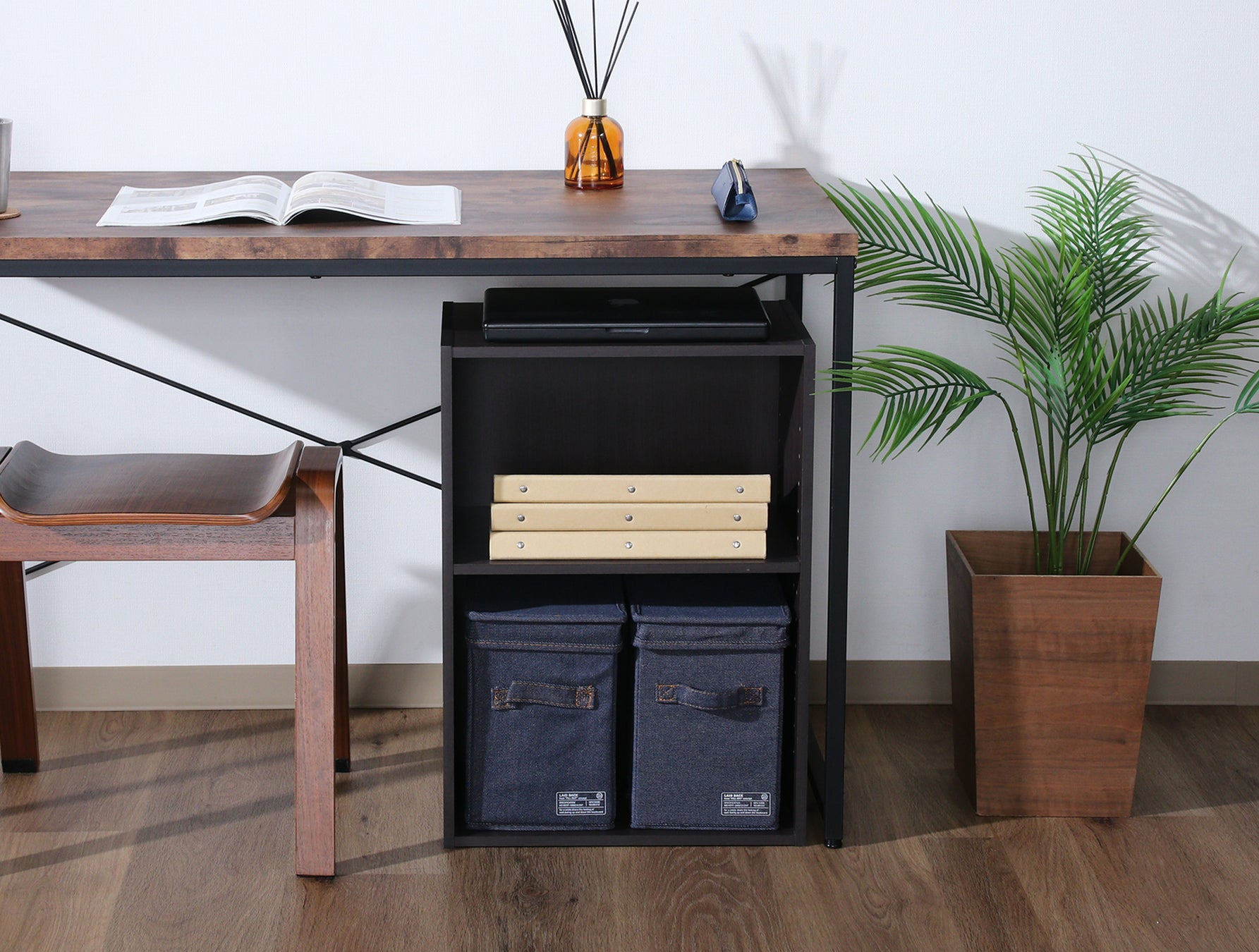 2段のカラーボックスをデスク下に設置すれば、バツグンの収納力を誇るデスク収納に変身。インナーボックスを使うことで、スッキリと収まります。