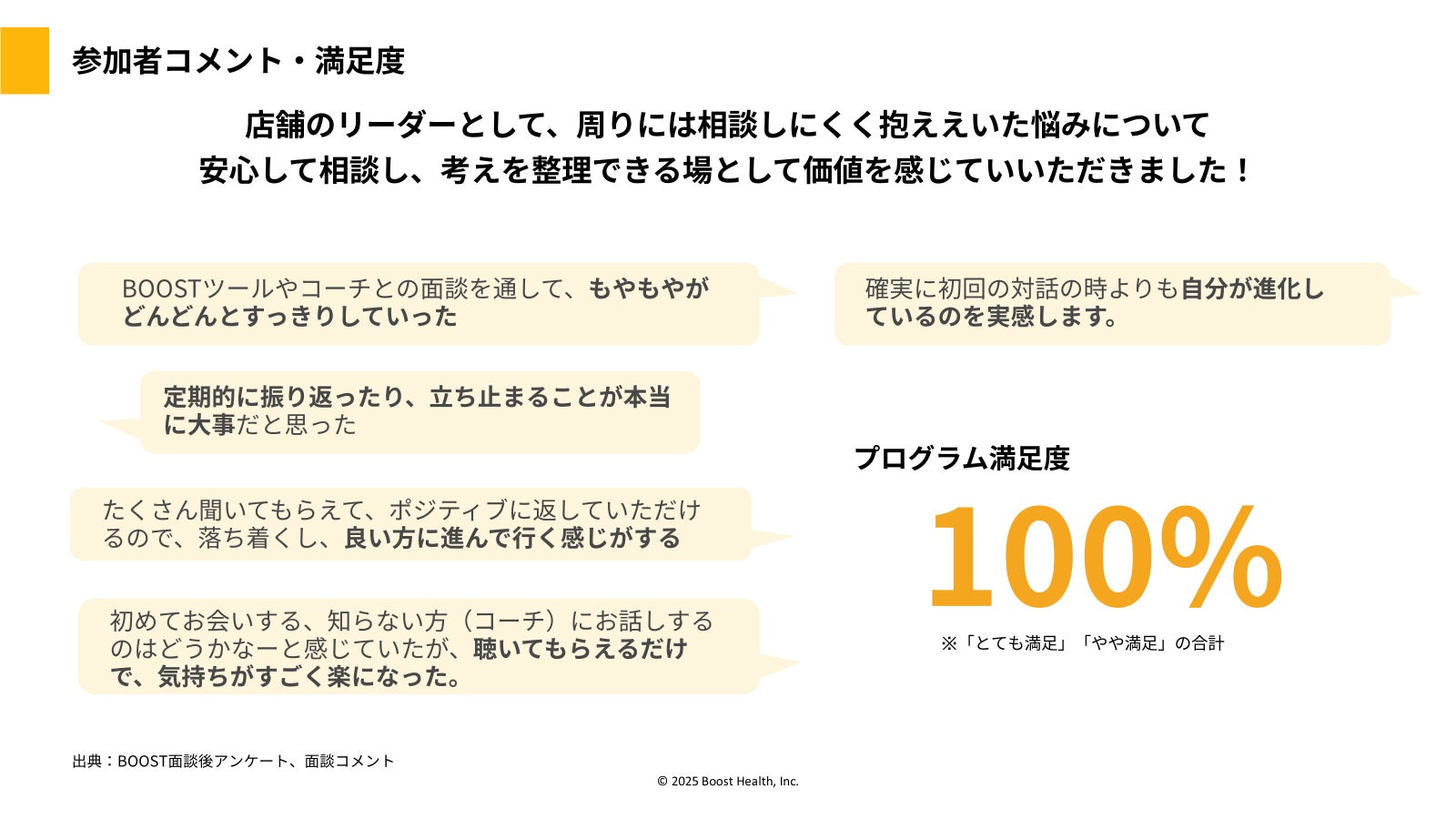 BOOSTは若手社員のオンボーディング、マネージャー層の負担軽減、中途・異動者の早期活躍、離職防止など、「投資効果を数値で可視化できる実践的な人的資本経営の打ち手」として広がりを見せています。