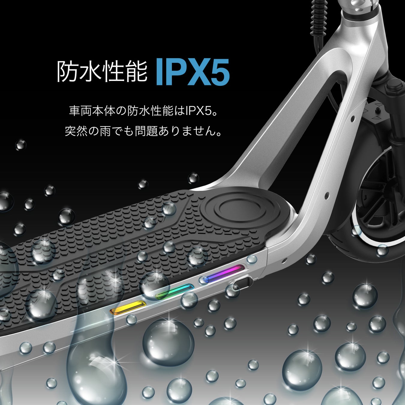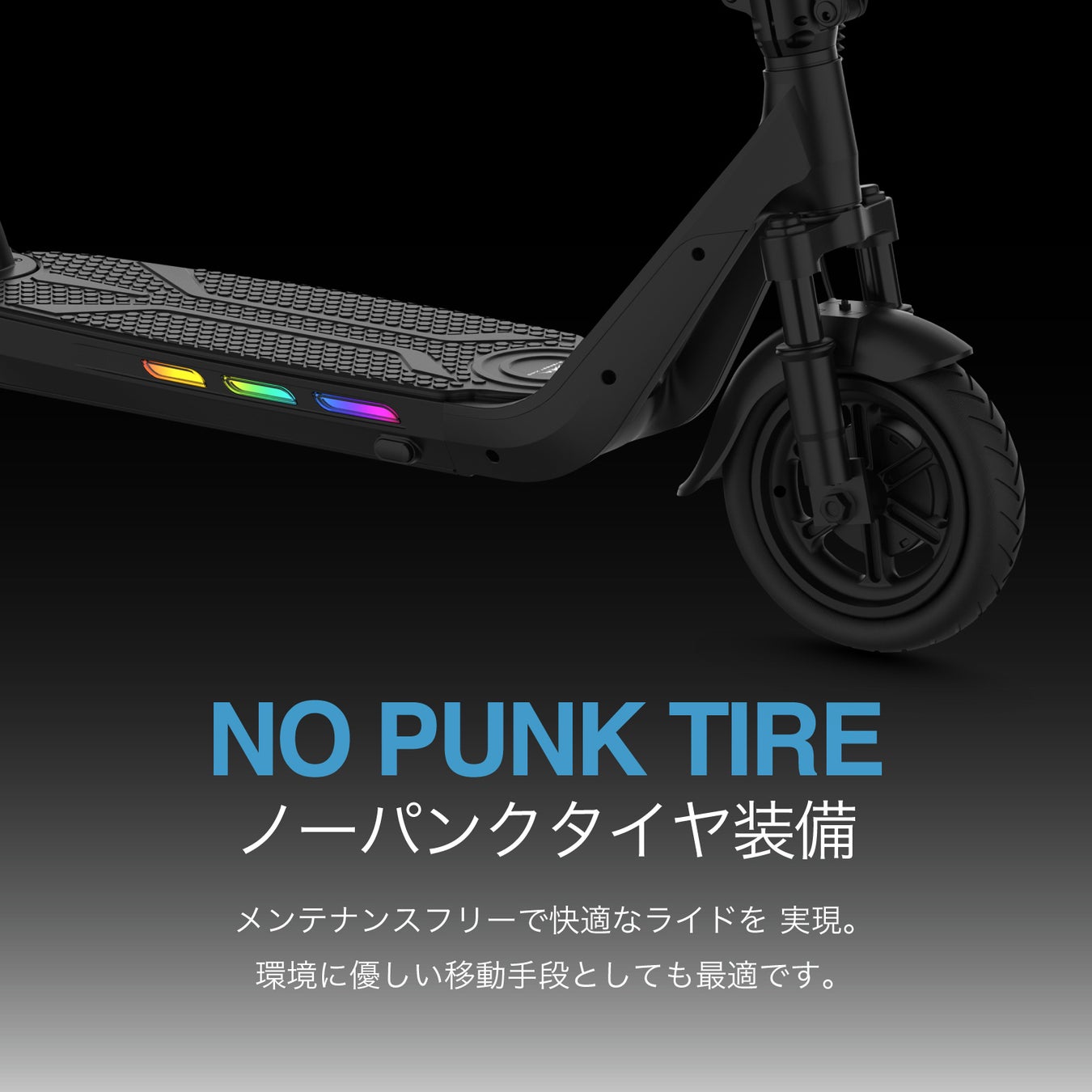 一目惚れなデザイン性はもちろん、乗り心地が重視されます。乗り幅も広く足を置きやすい構造と、前後サスペンションを搭載。最高峰の乗り心地を実現。また前後ノーパンクタイヤなので走行中パンクの心配もなし。車体は堅牢な造りになっているため、ガタつきはなく安心して走行可能。