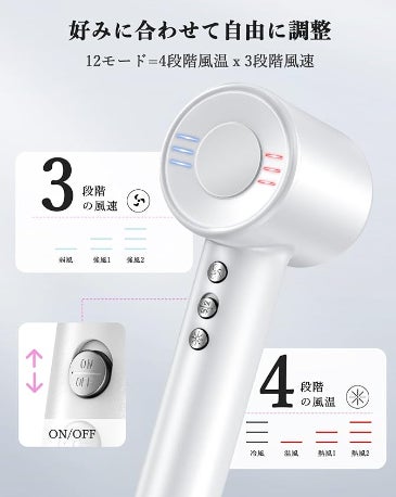 多段階の温度と風速の調整機能を備えており、さまざまな髪質やスタイリングのニーズに適しており、髪のドライ時間を自由に対応できます。