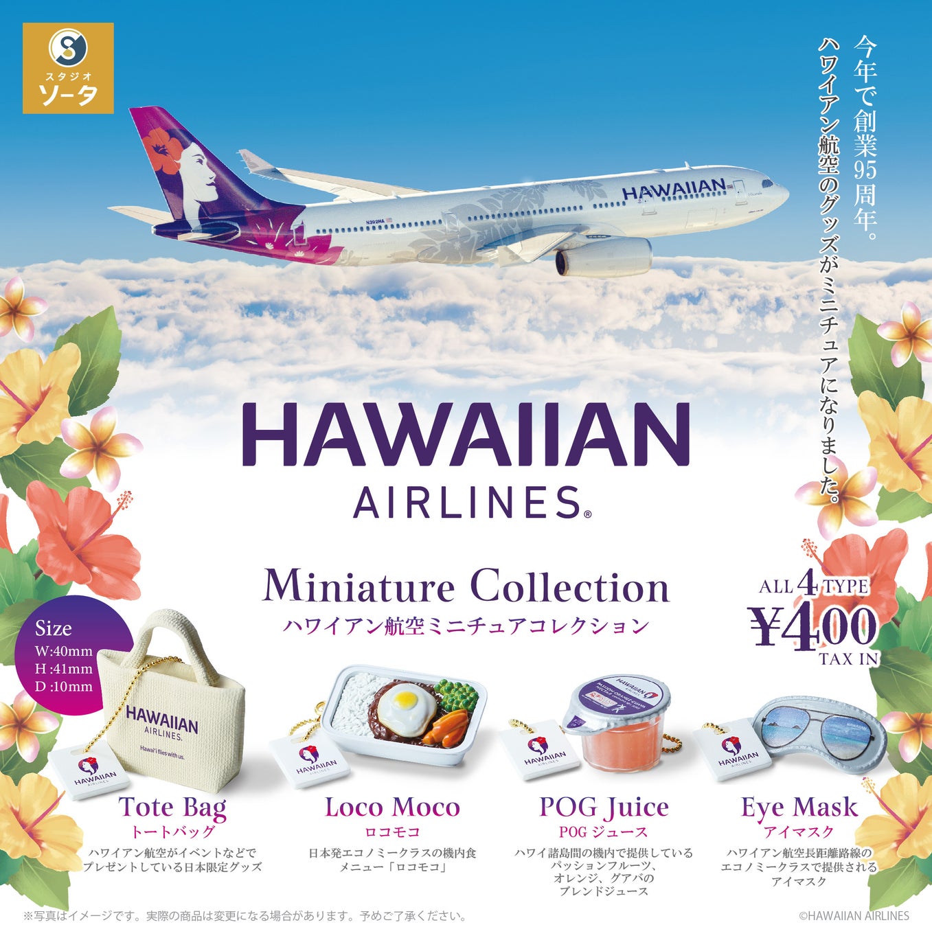 玩具メーカーのスタジオソータ(本社:東京都渋谷区、代表:安藤こうじ)は、ハワイアン航空×スタジオソータ「ハワイアン航空ミニチュアコレクション」 (カプセルトイ 400円(税込))を、2024年11月に発売することをお知らせします。
