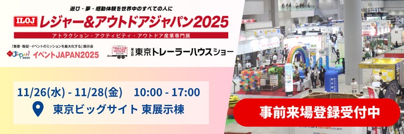 「レジャー&アウトドアジャパン」は、業界関係者が多数来場するアトラクション・アクティビティ・アウトドア産業に特化した専門展示会です。国内外の最新トレンドや製品・サービスが一堂に集まり、毎年規模を拡大しながら開催されています。円安によるインバウンド旅行客の増加や、日本人の国内旅行需要の高まりを背景に、全国各地でテーマパークやキャンプ・グランピング施設の新設・リニューアル、新アトラクションの導入など、レジャー産業全体が活況を呈しています。そうした市場環境の中で、本展示会は業界関係者の注目を集めており、2024年には 18,000名を超える来場者が訪れました。2025年はさらなる来場者増加が見込まれており、業界の最新動向を発信・共有する場として期待されています。