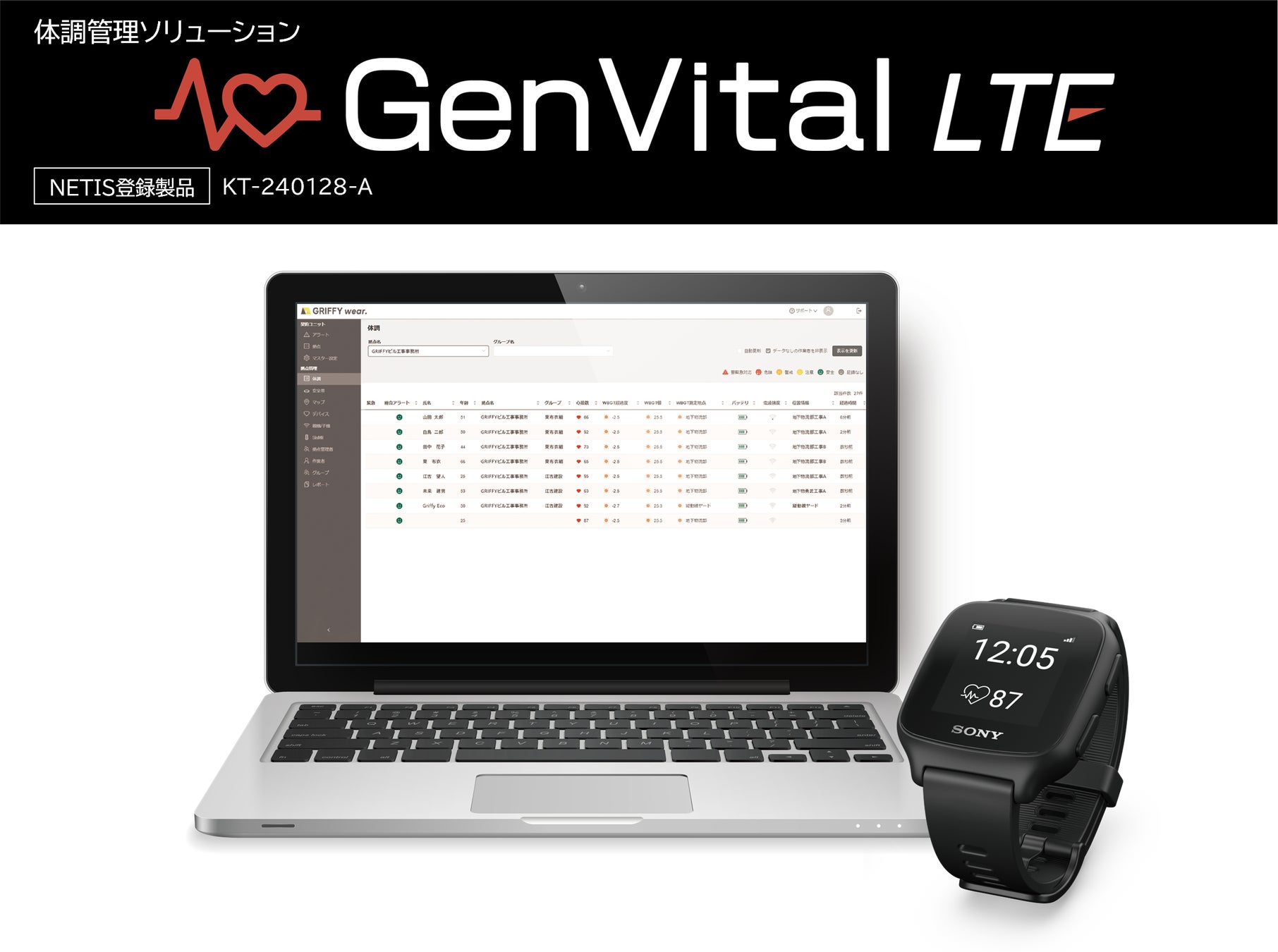エコモットの連結子会社であるGRIFFYが現場作業員の体調管理ソリューション「GenVital(ゲンバイタル)」を大林組と共同開発