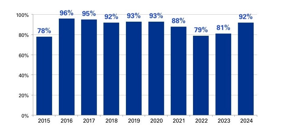 83%のCEOが3年以内に「週5日出社」に戻ることを予測しており、前回調査の64%から増加している