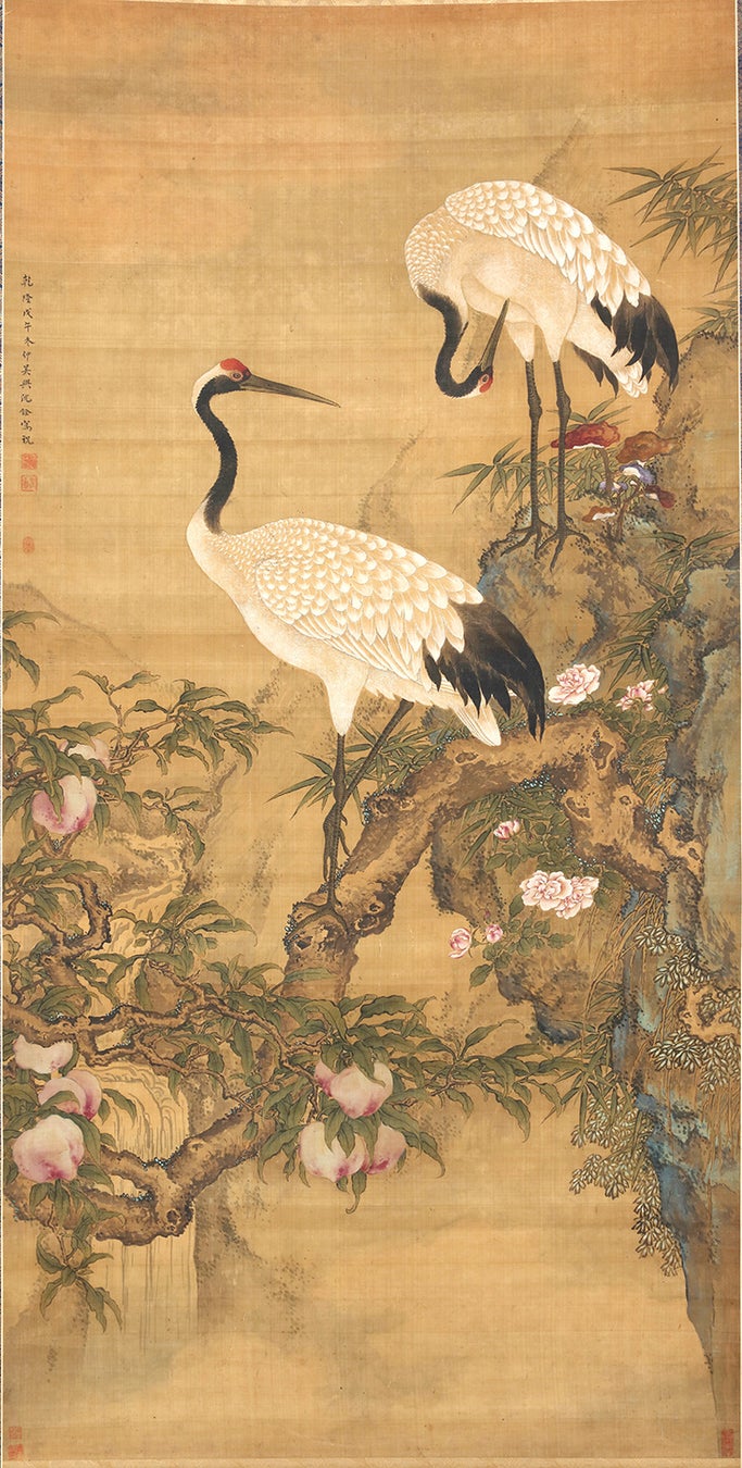 享保16年(1731)に長崎に渡来した清朝の画家・沈南蘋 [しんなんぴん]は、緻密な写実的描写と鮮やかな色彩を特徴とする画風でたちまち人気を博し、当時の日本絵画に大きな影響を与えました。