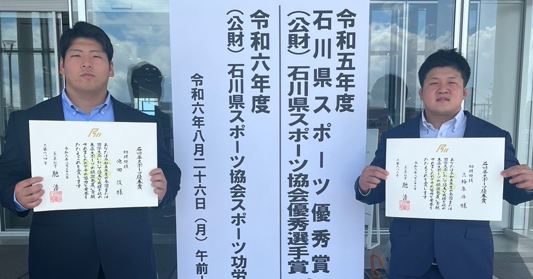 株式会社ソディックの相撲部に所属する三輪隼斗選手と池田俊選手が、「令和5年度石川県スポーツ優秀賞(石川県知事表彰)」を受賞いたしました。