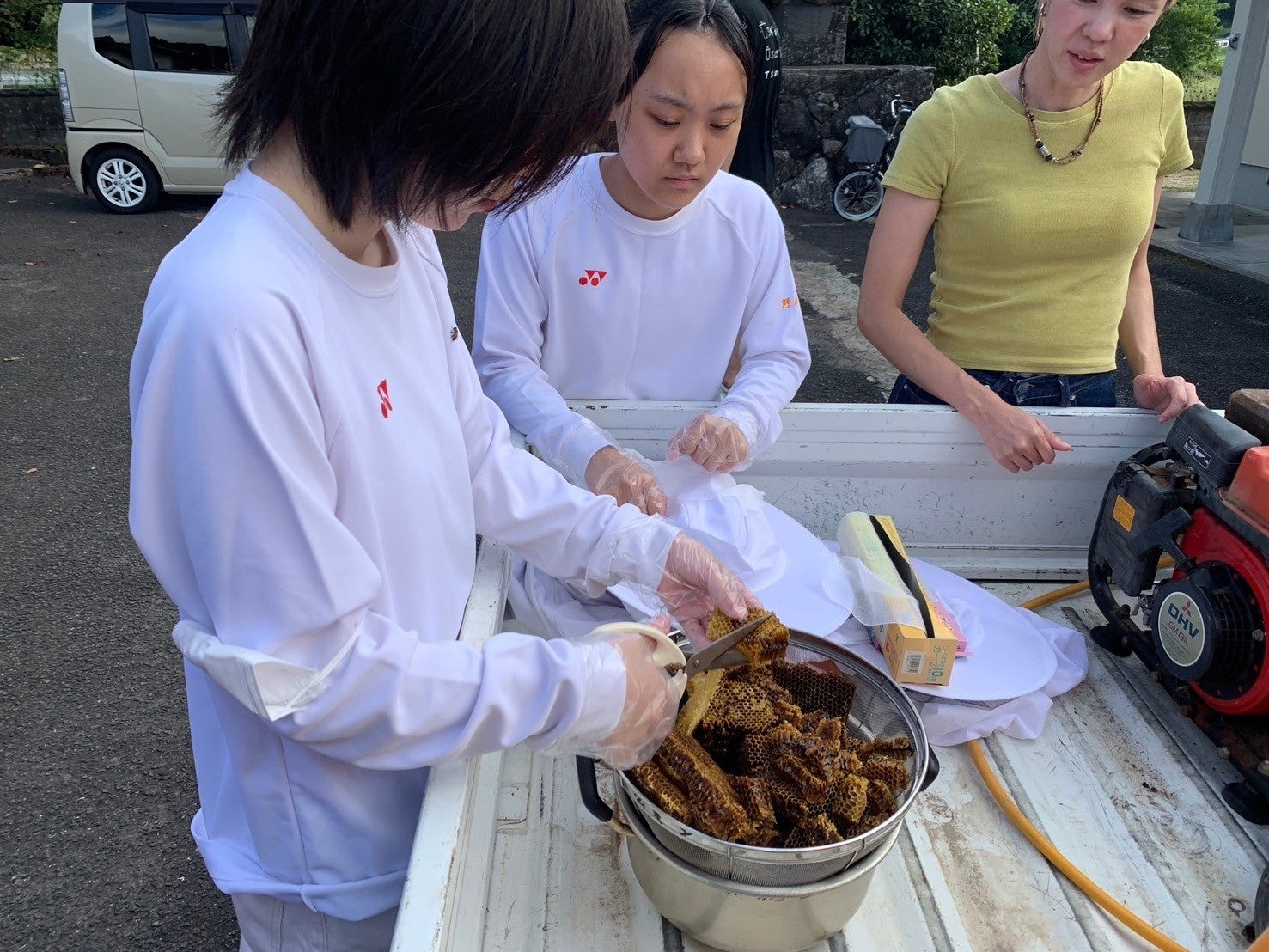 初めての採蜜が実施され、唐津南高校の食品流通科の生徒たちがその作業を行いました。初めての経験にもかかわらず、彼女らはミツバチにすぐに慣れ、無事に採蜜作業を終えることができました。この蜂蜜は、今後学校で商品化され、地域ブランド「自然共生サイト」のプレミアム商品として提供される予定です。
