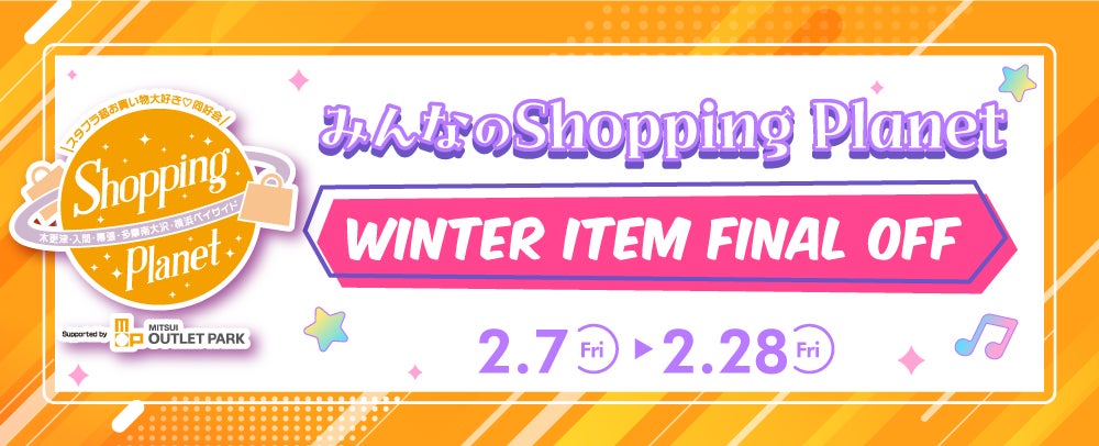 実需に強い当施設のウィンターアイテムファイナルオフを実施。【スタプラ超お買い物♡同好会「Shopping Planet」Supportedby 三井アウトレットパーク】と連動する形での個店販促を集積。