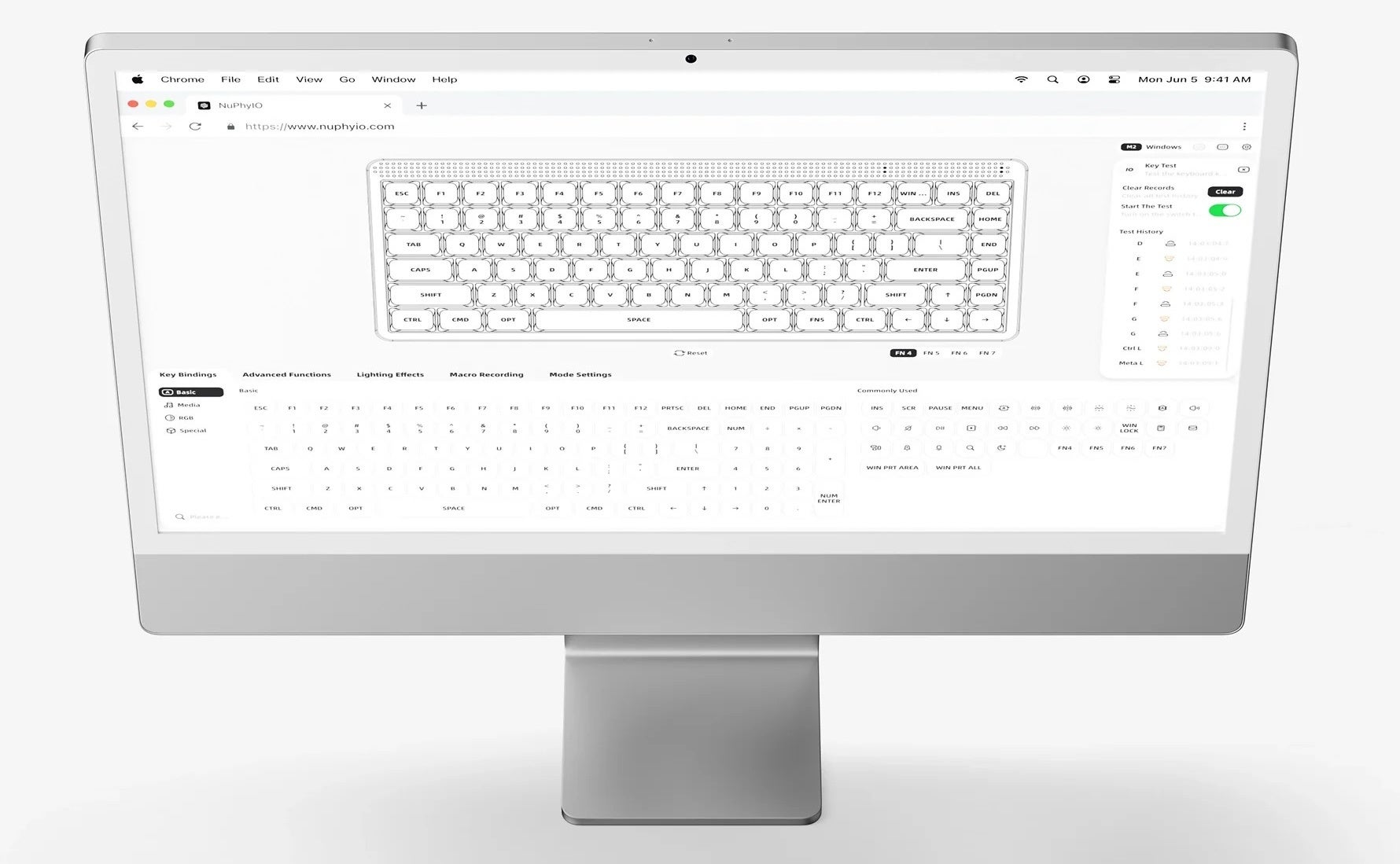 Node75は、NuPhy自社開発のウェブドライバー「NuPhy IO 2.0」に対応しており、キーマップやマクロ、ライティングエフェクトなどの高度な設定を、ブラウザ上から簡単に行うことができます。用途や好みに応じた、自分だけのキーボードカスタマイズが可能です。