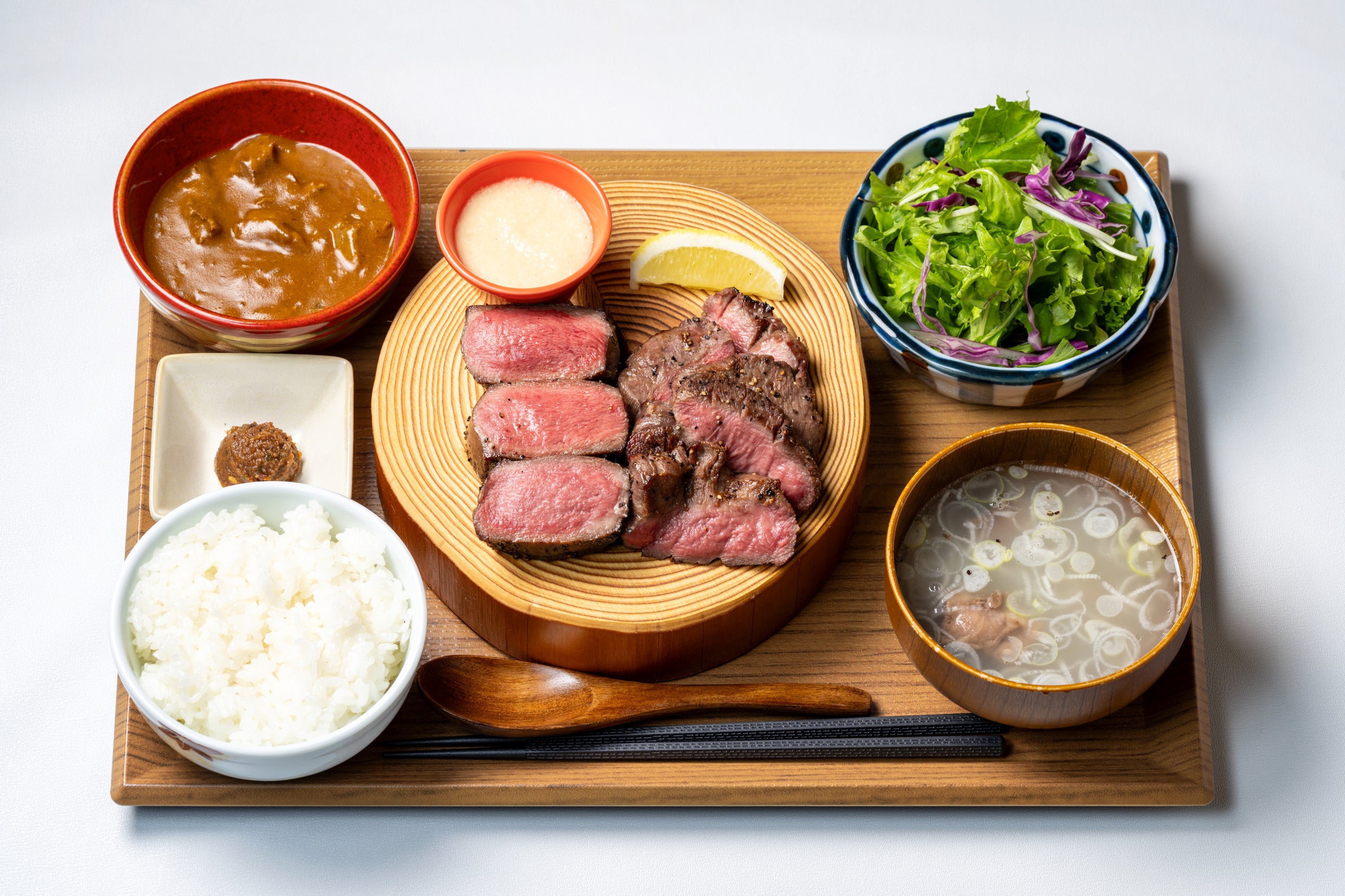 看板商品である“名物「極み」ステーキ”は、この「たん元」を熟練の職人が高級備長炭でじっくり焼き上げます。表面を高温で香ばしく焼き上げた後、時間をかけて中まで火を入れる独自の調理法により、柔らかさ・ジューシーさ・深い旨みを最大限に引き出しています。厚切りならではの迫力ある見た目と美しいレア感、箸で感じるずっしりとした重み、噛むごとに広がる旨みが、国内外の食通を魅了しています。