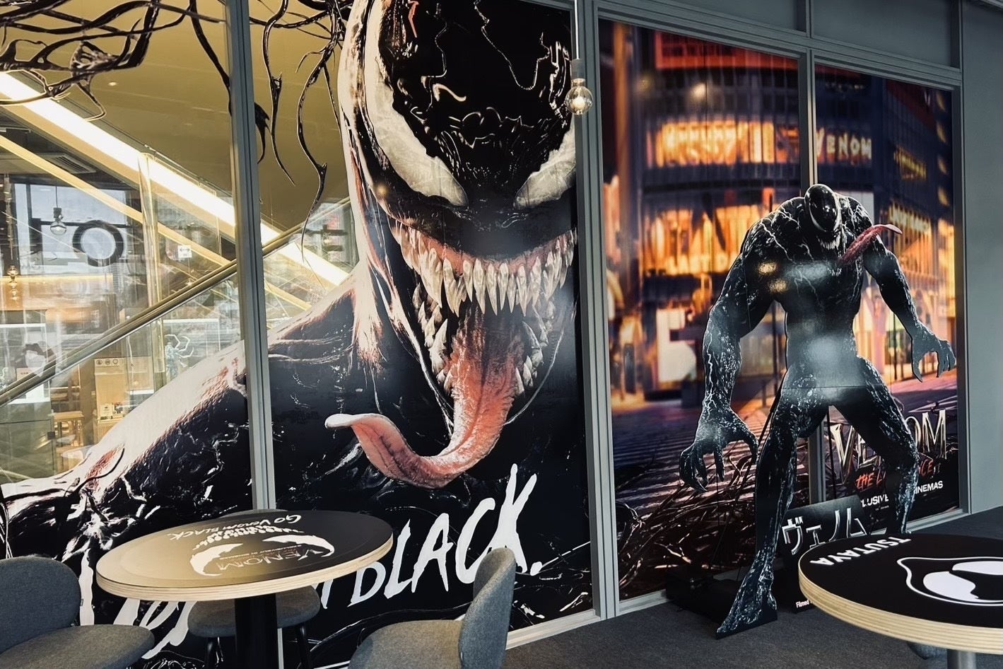 ヴェノムにインスパイアされた空間で特別なカフェ・ラウンジ空間をお楽しみいただけます。