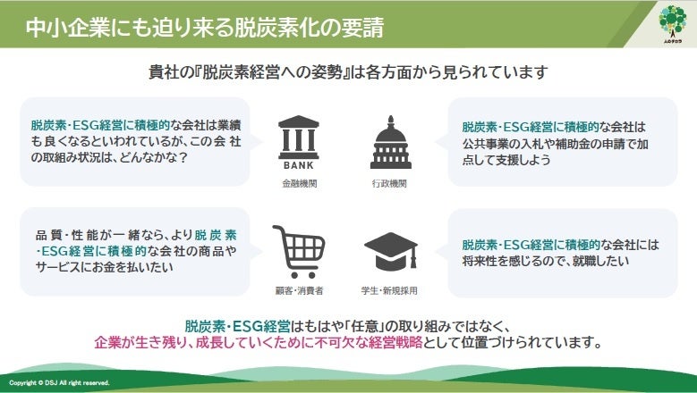 中小企業の皆様におかれましても、脱炭素の要請に直面しています。自治体の皆様からも、地域の企業様の脱炭素が進まないというお話をよく伺います。