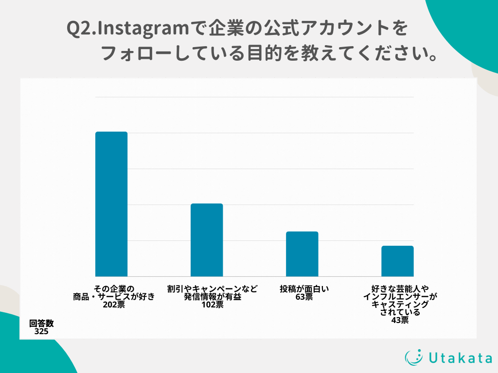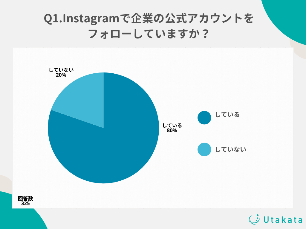 ショート動画SNSの運用やインフルエンサーキャスティングを行う株式会社Utakata(https://utakata.co.jp/)は、10代〜50代のInstagramユーザーの男女325名を対象に、「Instagramの企業アカウント」に関する調査を実施いたしましたのでお知らせいたします。