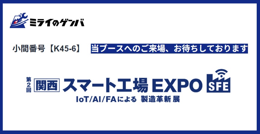 製造現場に特化した、AI現場帳票システム「ミライのゲンバ帳票」を提供する株式会社ミライのゲンバ(本社:東京都港区、代表取締役社長:佐藤 哲太 以下、ミライのゲンバ)は、2026年5月13日(水)~2026年5月15日(金)に開催される「第2回 [関西] スマート工場EXPO(場所:インテックス大阪【K45-6】)」に出展いたします。