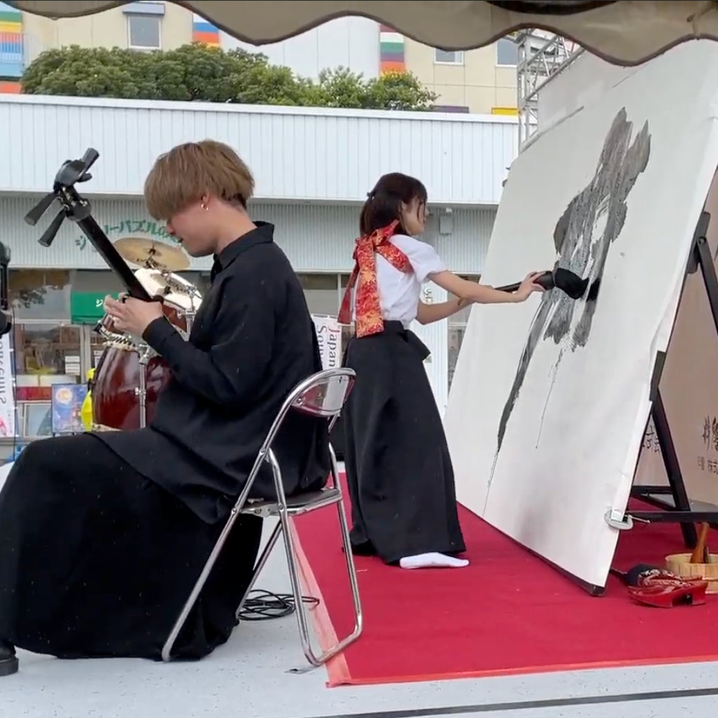 当日は、400年の伝統を受け継いでいる古武術「天心流兵法」の組み太刀の披露や、国内外の大イベントにてパフォーマンスを披露している書家・三重野 文緒による書道パフォーマンスに合わせて津軽三味線コンクール全国大会優勝者・かつ数々の有名アーティストとのコラボを実現している三味線奏者・匹田 大智、海外ツアーでも腕前を披露している和太鼓奏者・浅野 聡太によるコラボパフォーマンスが実施されたほか、福井の伝統工芸アイドル「さくらいと」メンバーによるパフォーマンス、愛知県にゆかりのある尾張貫流槍術 柳生新陰流兵法 春正館一門による演武などが披露され、見どころたっぷりのステージとなりました。