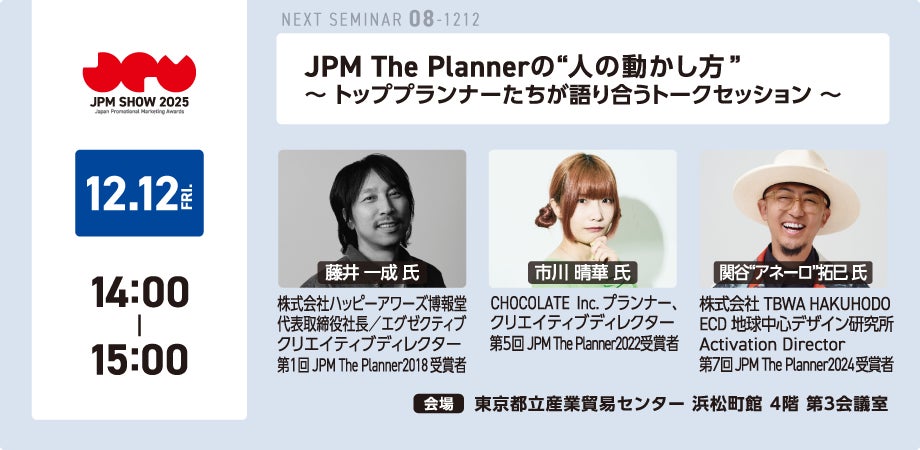 ・NEXTセミナー(有料)の詳細:https://jpm-inc.jp/exhibition/seminar-list/