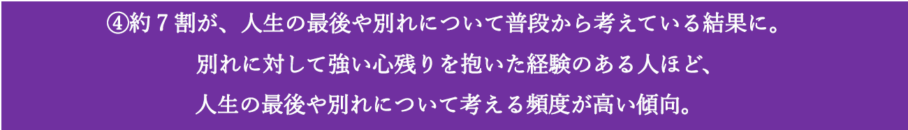 ④約7割が、人生の最後や別れについて普段から考えているという結果に。