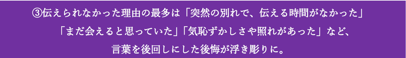 ③伝えられなかった理由の最多は「突然の別れで、伝える時間がなかった」