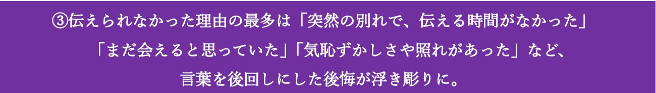 「まだ会えると思っていた」「気恥ずかしさや照れがあった」など、言葉を後回しにした後悔が浮き彫りに。