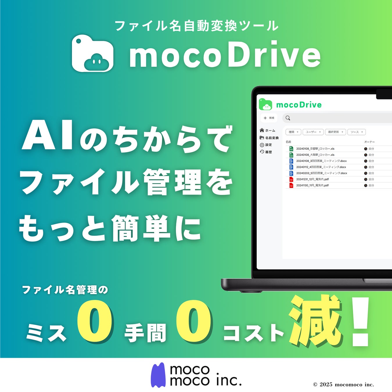 mocoDrive:自動リネーム機能付きオンラインドライブ