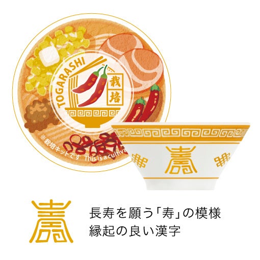唐辛子を育てる栽培キットで、パッケージには味噌ラーメンのイラストを描いています。
