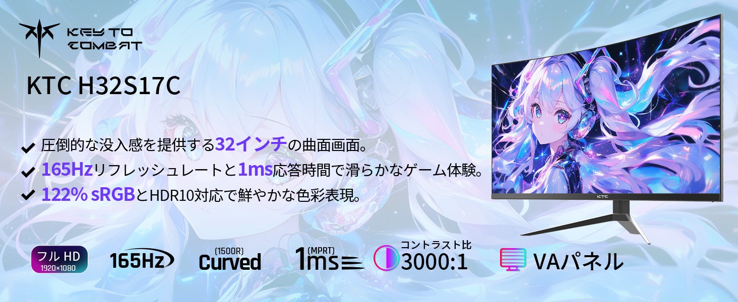 H32S17Cは、フルHD解像度、165Hzのリフレッシュレート、1500R湾曲型スクリーンを搭載したゲーミングモニター。ゲームや映画に最適なHDR10対応で、鮮やかな映像を楽しめます。5%オフコード「P4K28HFD」でさらにお得!