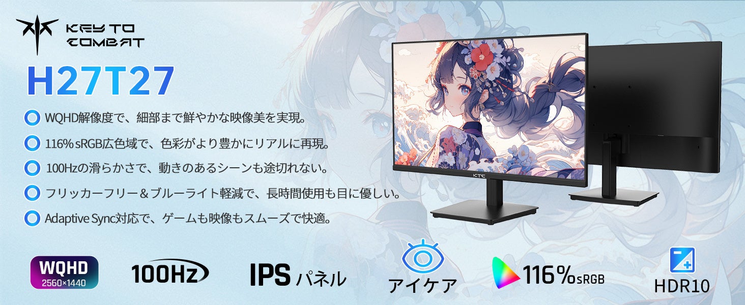 H27T27は、WQHD解像度、100Hzのリフレッシュレート、広色域を持つIPSパネルを搭載し、仕事やゲームに最適です。5%オフコード「P4K28HFD」を使って、お得にゲット!