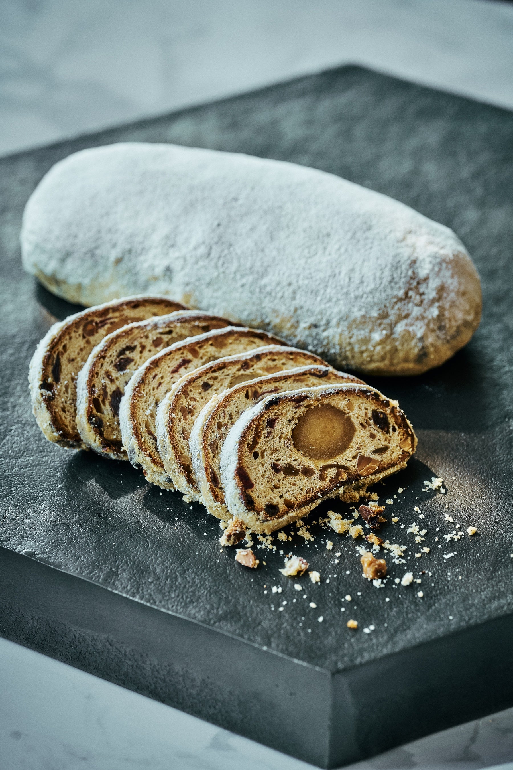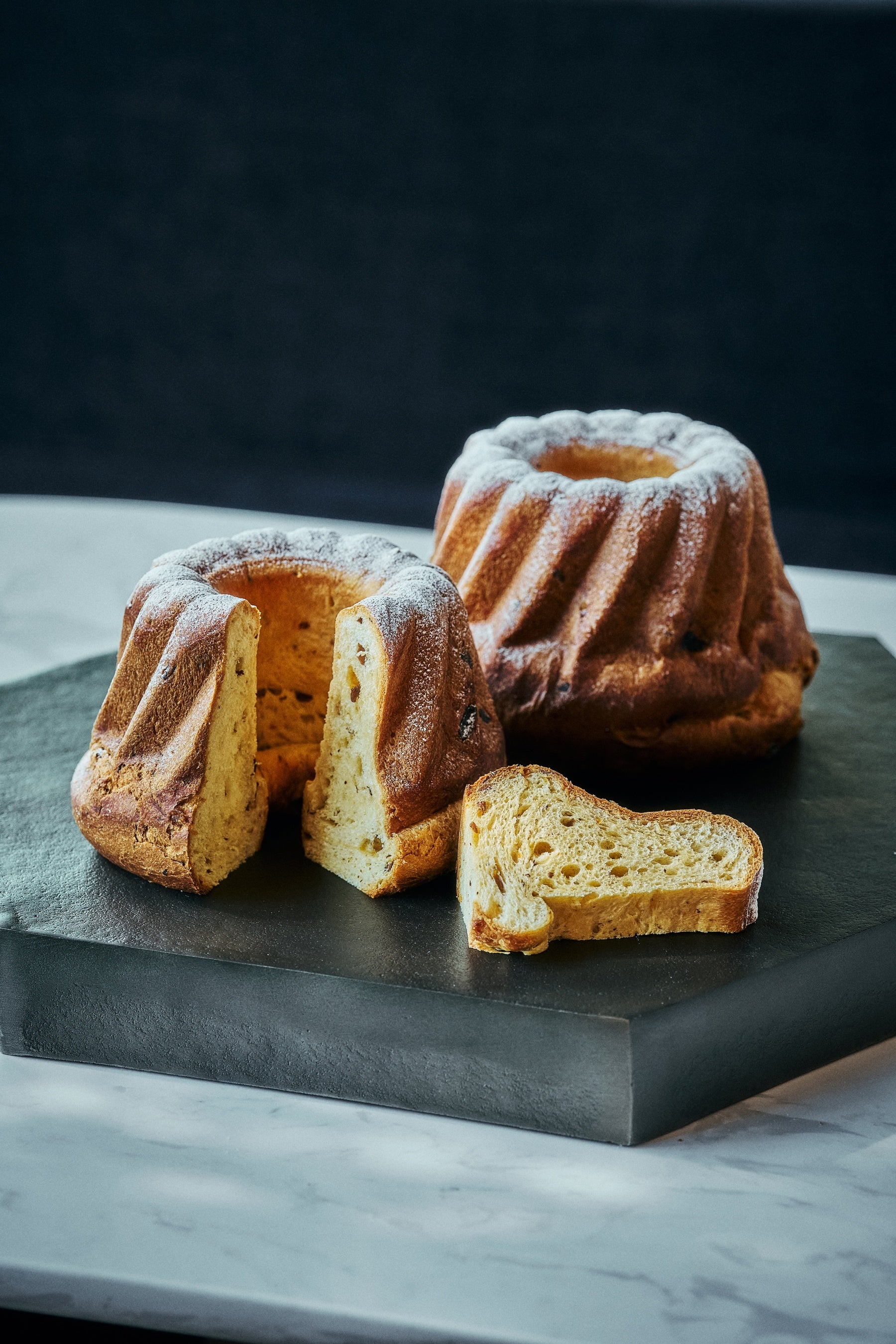 さらに、クリスマスの訪れを告げる伝統的な焼き菓子として、「シュトーレン」と「クグロフ」もご用意いたしました。シュトーレンにはメープルシロップを使用し、レーズン、クランベリー、イチジクのドライフルーツや、アーモンド、クルミ、ピーカンナッツを贅沢に加え、さらにマジパンローマッセを包み込むことでアーモンド本来の芳醇な香りが際立ち、豊かな味わいと多彩な食感をお楽しみいただけます。クグロフには黒富士ファームの平飼い卵を使用し、レーズン、オレンジピール、アーモンド、オレンジブロッサムの風味が口いっぱいに広がる、しっとりとした口当たりと優しい味わいが魅力の、シンプルながらも洗練された焼き菓子です。