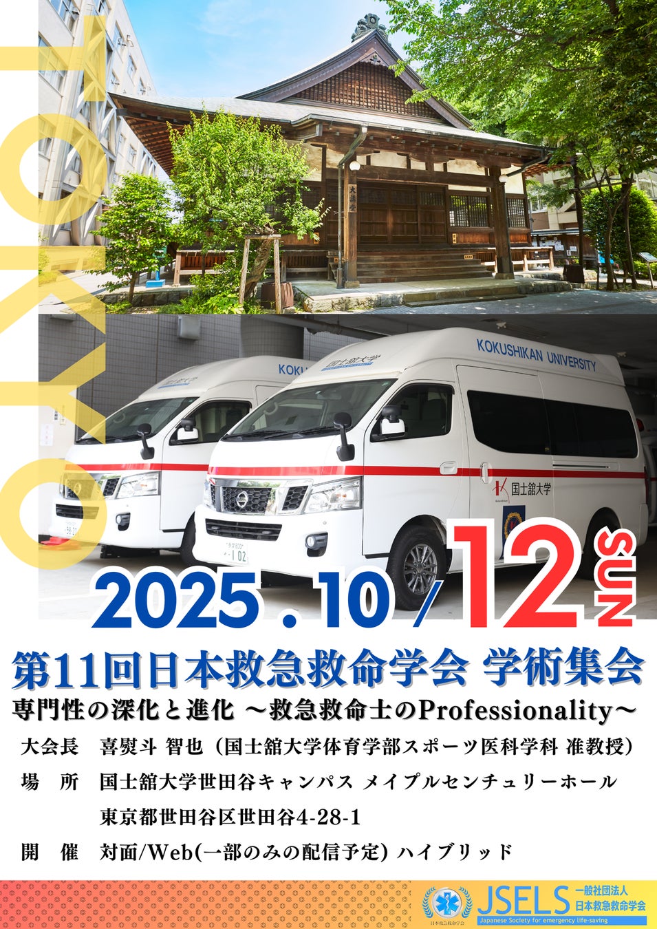 ※なお、本学術集会へのお問い合わせは、第11回日本救急救命学会学術集会運営事務局(11thJSELS-info@kokushikan.ac.jp)までお願いいたします。