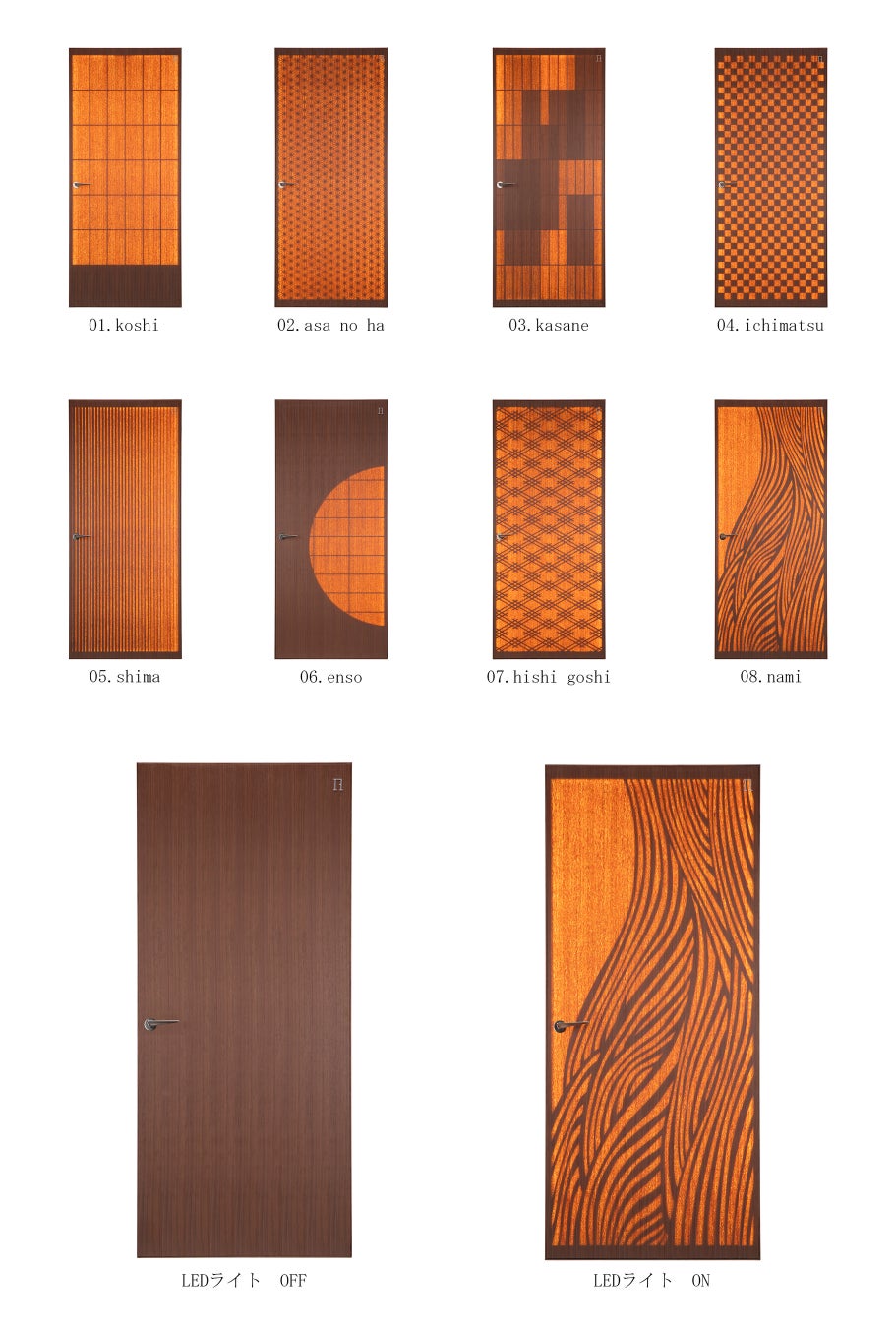 LEDライトOFF状態では木製フラット扉ですが、LEDライトをONにすることにより、陰影のデザ