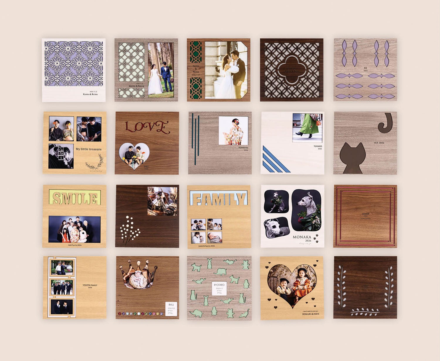 木製パネルを表紙に使用したオリジナル製本のフォトアルバム「ウッドシリーズ」がARK RAY(アークレイ)より登場。繊細で複雑なレーザー加工による100通りのデザインがラインアップしました。