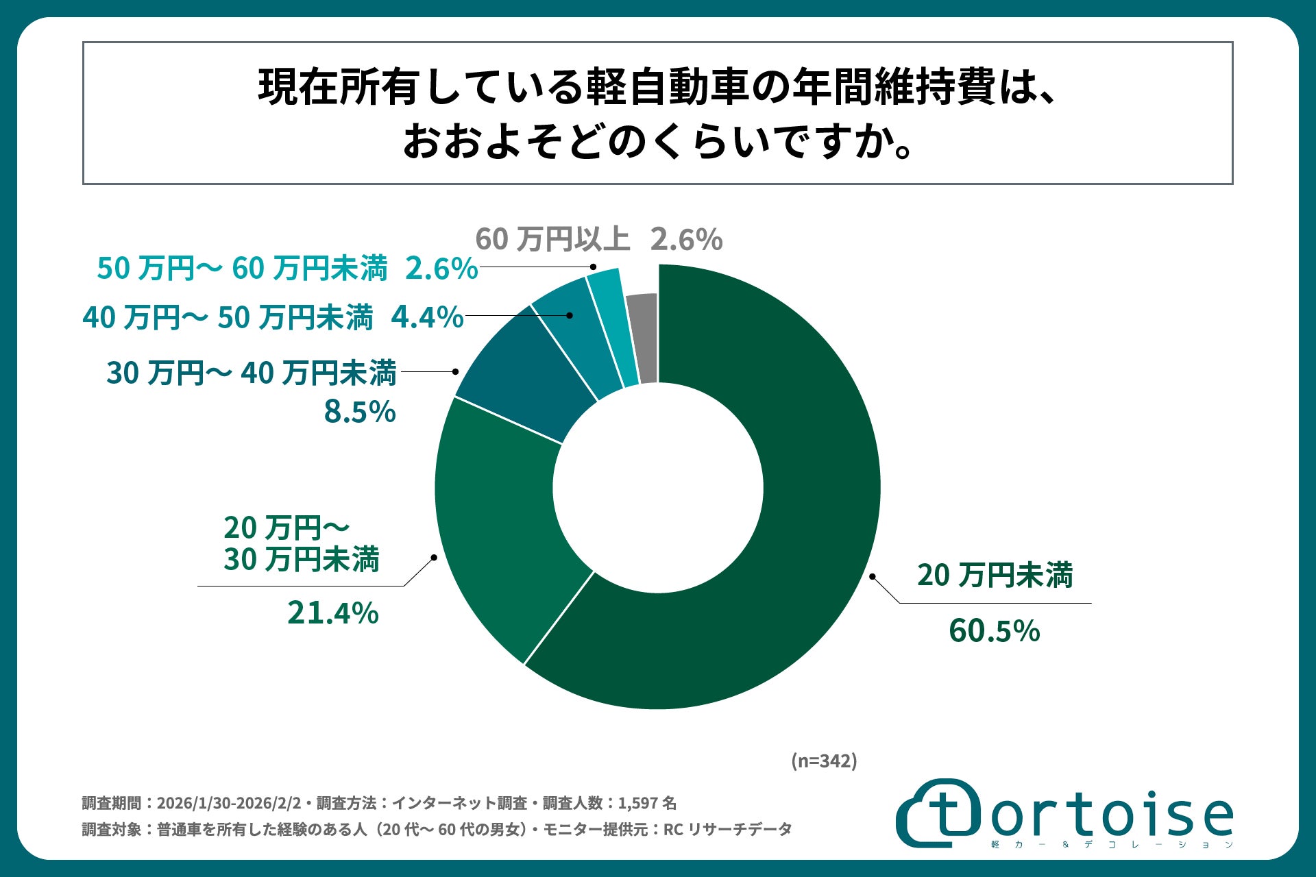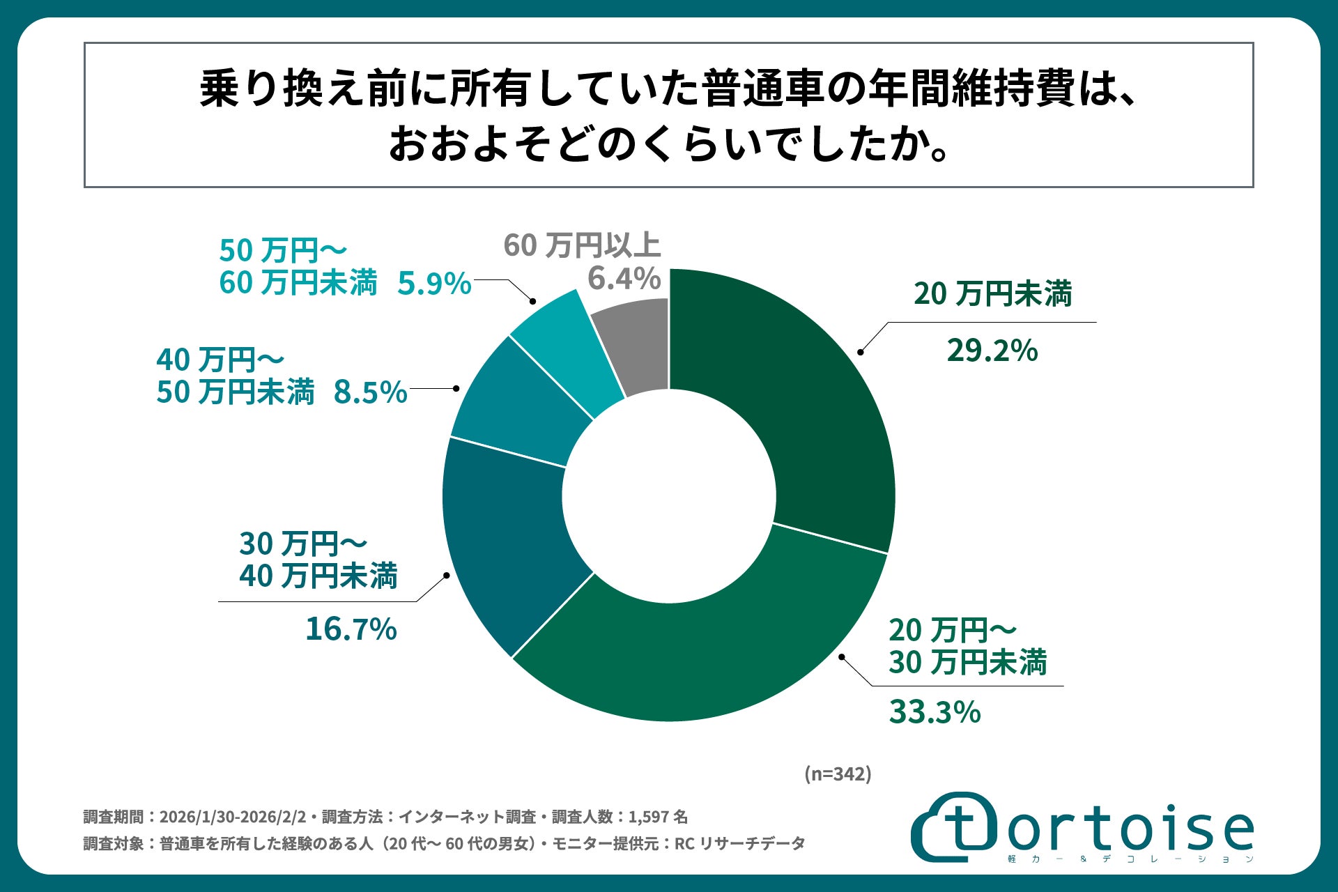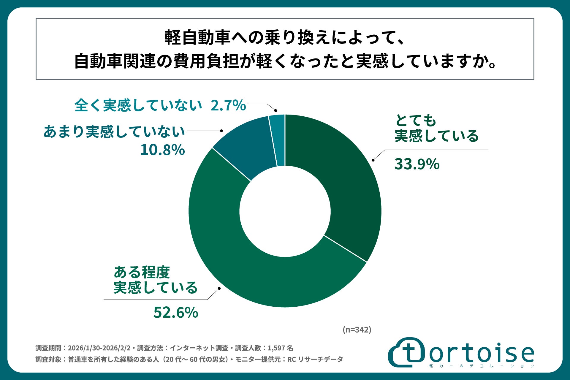 株式会社トータス(本社:神奈川県大和市、代表取締役社長:村野 公紀)が運営する「tortoise」は、普通車を所有した経験のある人(20代~60代の男女)を対象に「軽自動車へのダウンサイジングに関する実態調査」を実施しました。この調査から、普通車を所有した経験のある人の軽自動車への乗り換え検討の実態や、実際に乗り換えた理由、乗り換えによる維持費の変化と満足度などが明らかになりました。